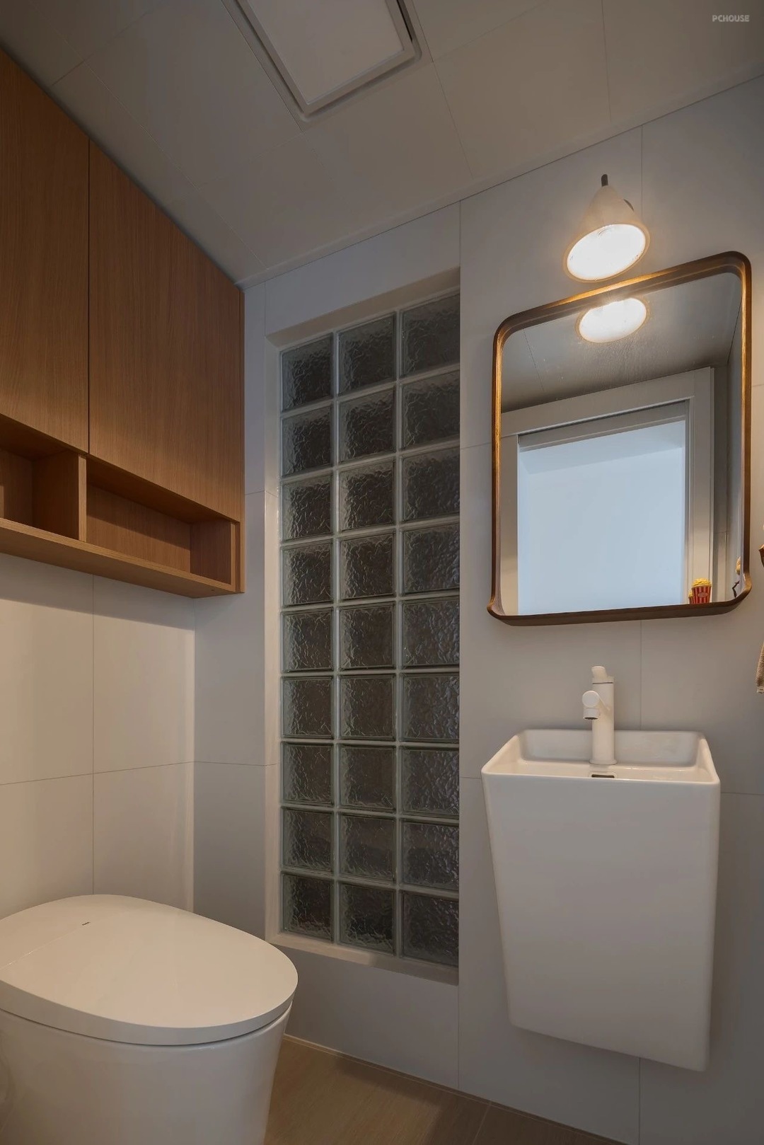 卫生间一分为二,打造两个马桶区。一边搭配的是迷你洗手台。