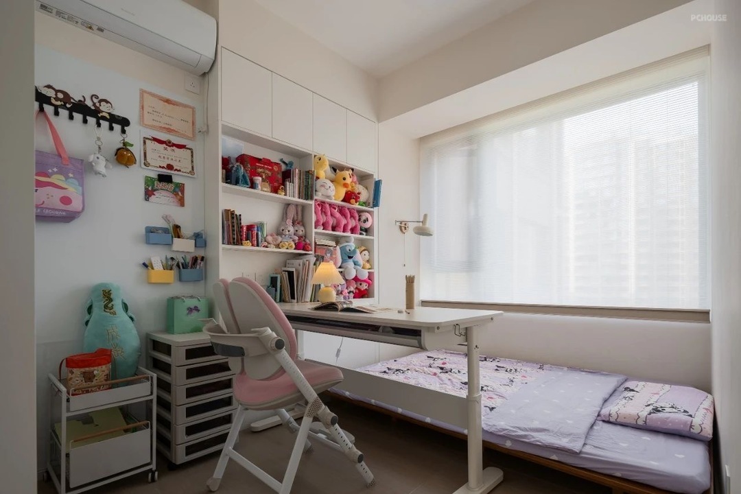 胡女士最开始就特别提出二宝的房间一定要有个书桌,所以咱们当然是要安排上!书桌也是选择活动学习桌,让这个房间后期能拥有更多样的变化。