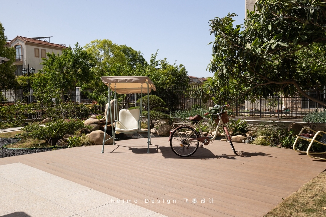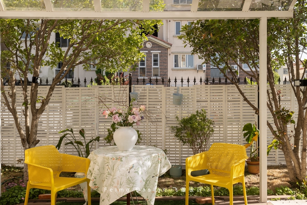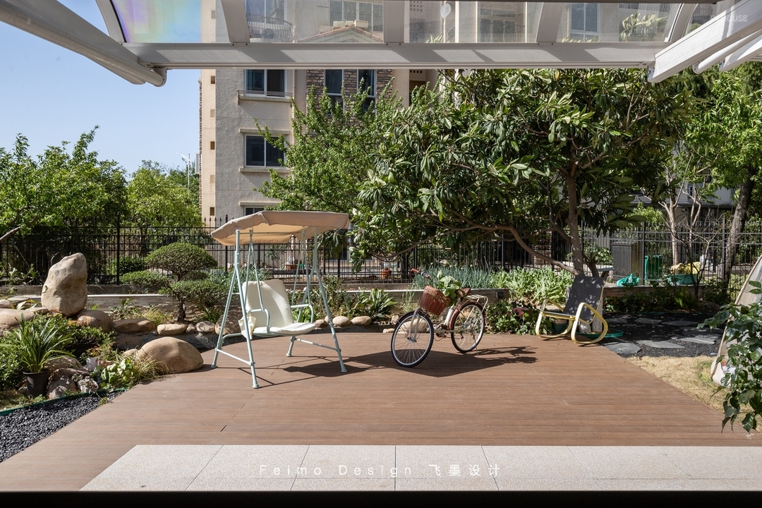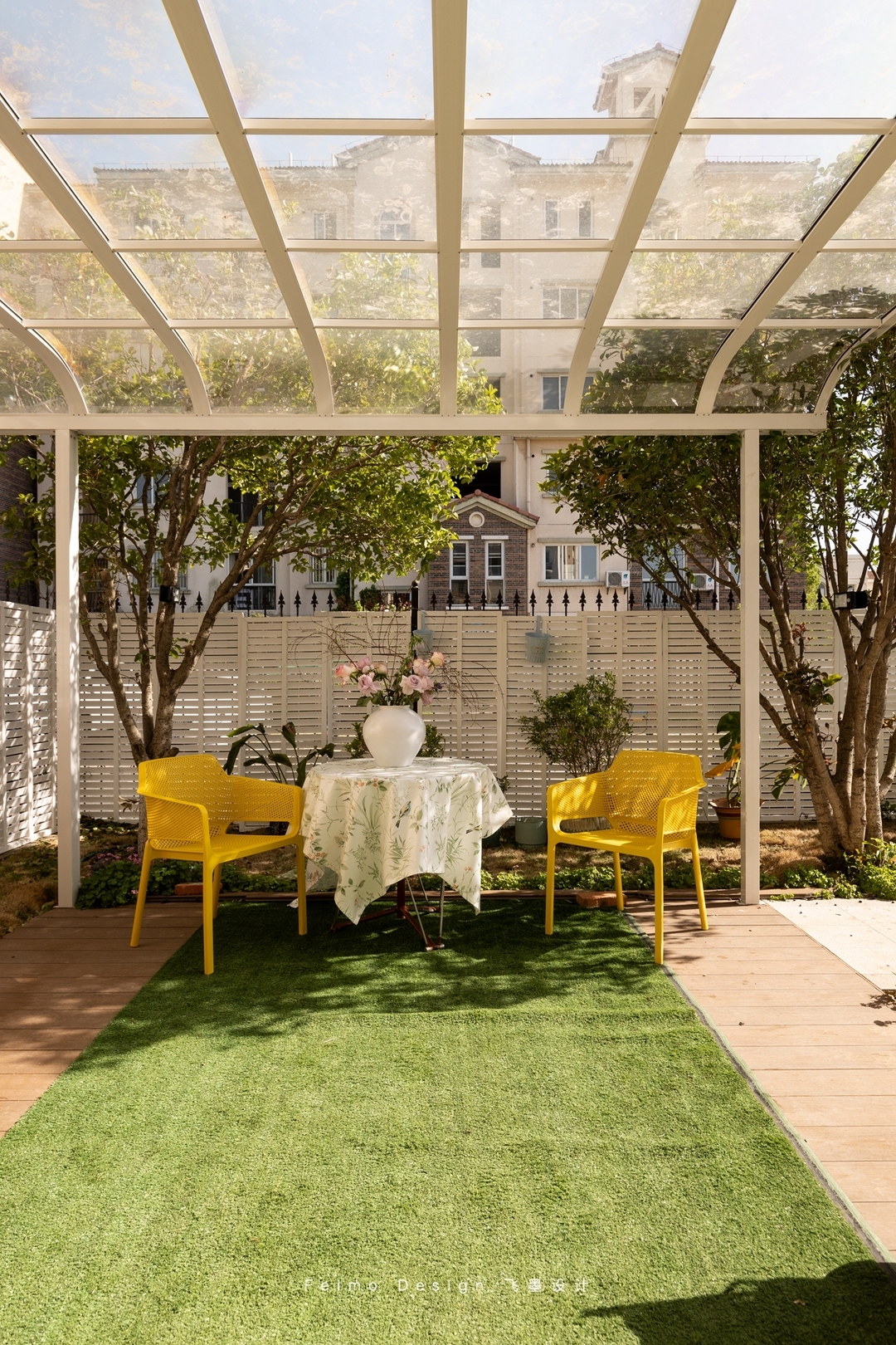次卧是预留的客房,大部分时间都是没有人居住的,所以布局尽量简约处理,一张床,两个床头柜,简单又实用;与院子之间用折叠窗隔断,尽览室外美景。