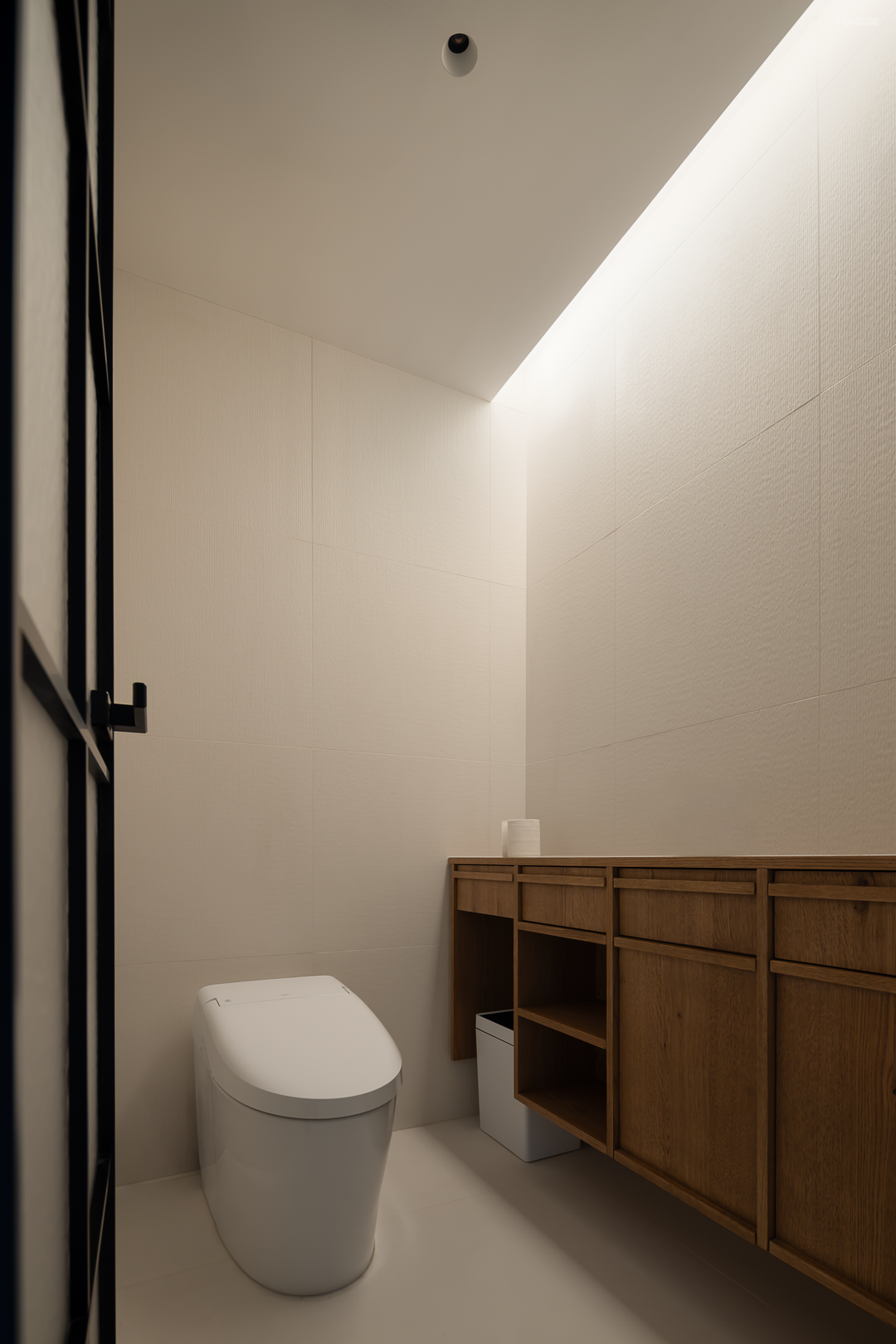 主卧调整了大门的方向,移至客厅,并采用了隐形门设计。这是基于未来五年内家庭使用习惯的考量,预计男女屋主将频繁使用南面的核心区域。而五年后,北面的次卧可能会成为高频使用的空间。这样既满足了当前需求,又预留了未来的灵活性。