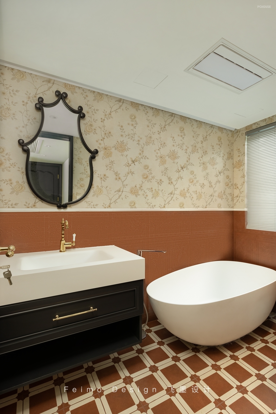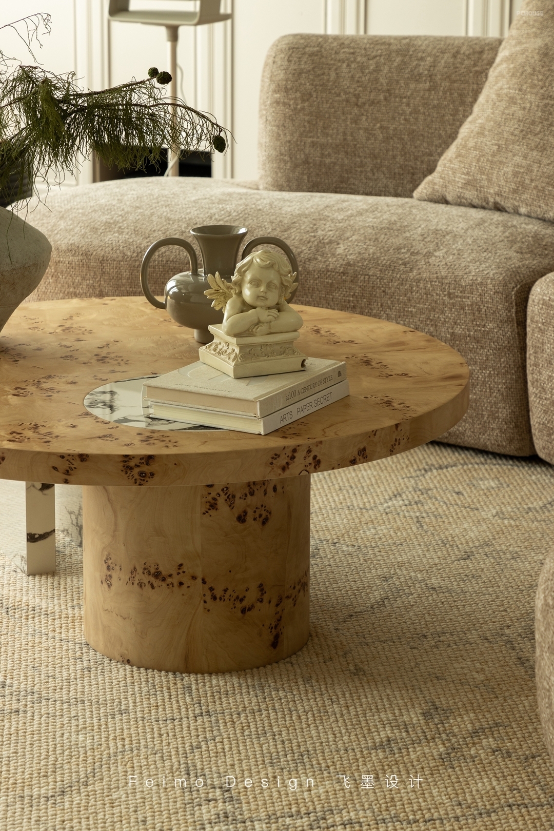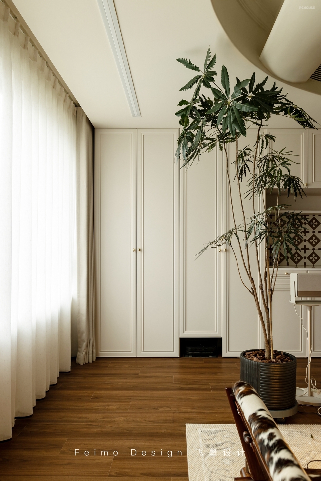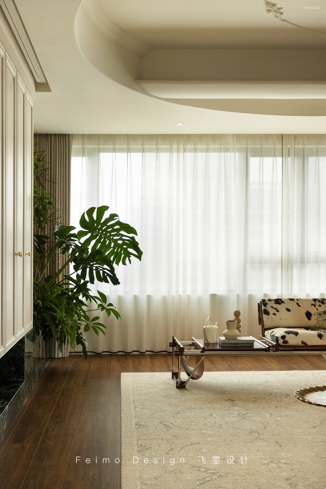 大理石的色泽纹理是自然的馈赠,但如何使用则在于设计师的精心搭配。恰如本案中,将法式电视柜和大理石地台结合。不同材质的混用,让房子更显天然的纹理质感,而不是简单的添加色彩。