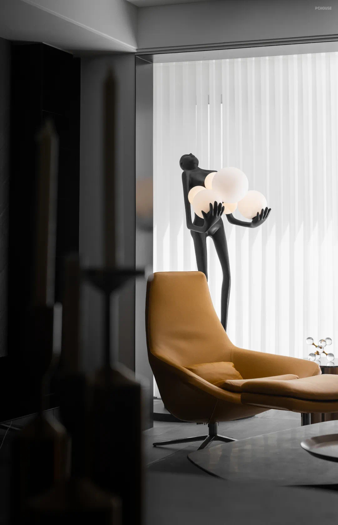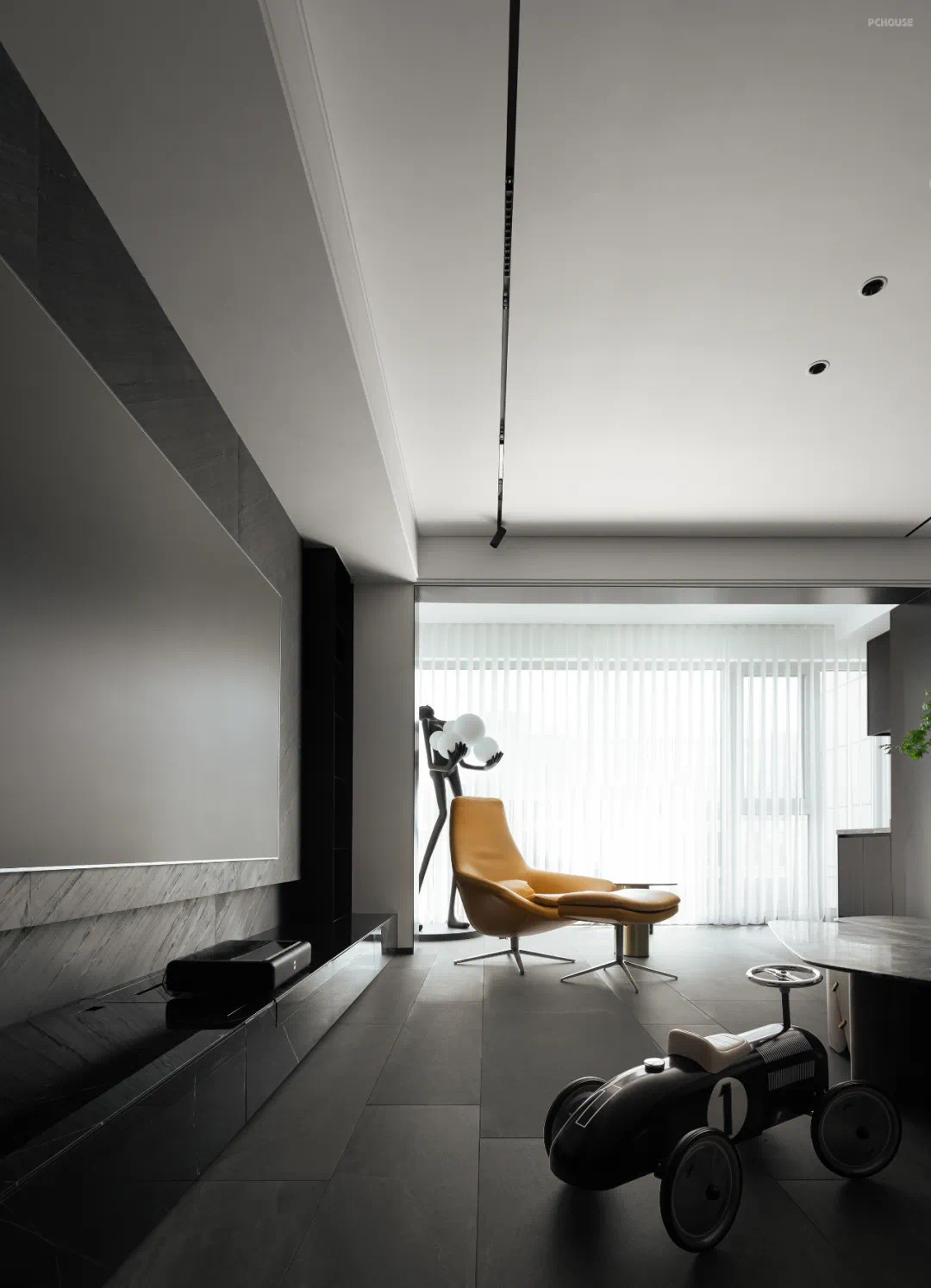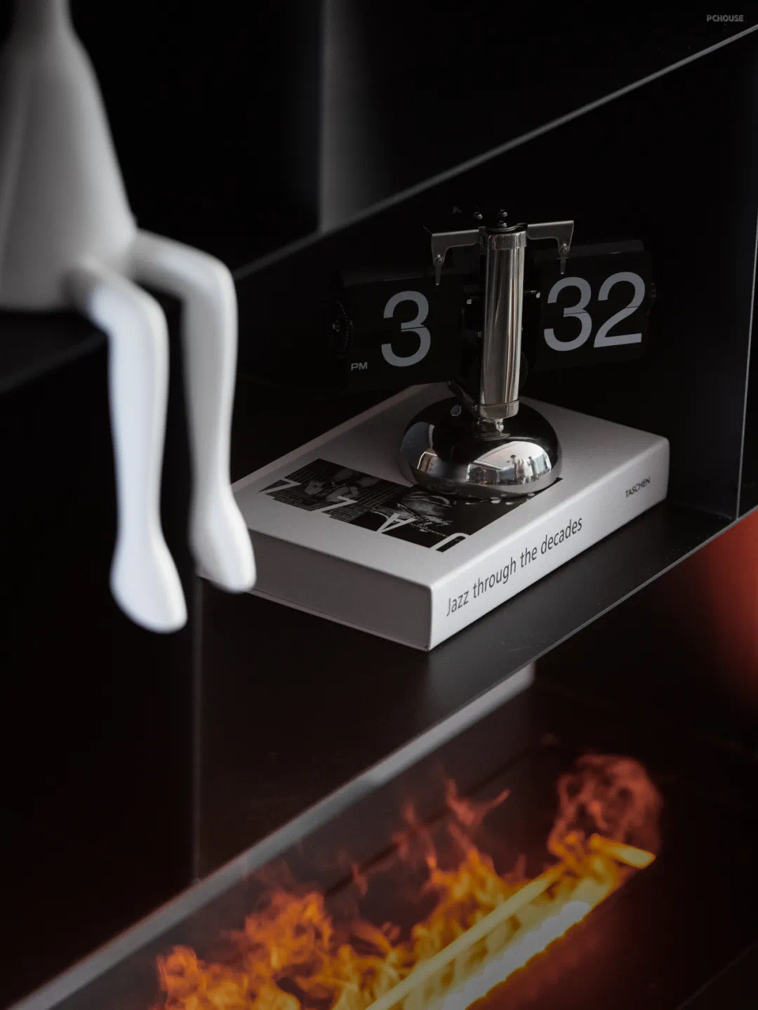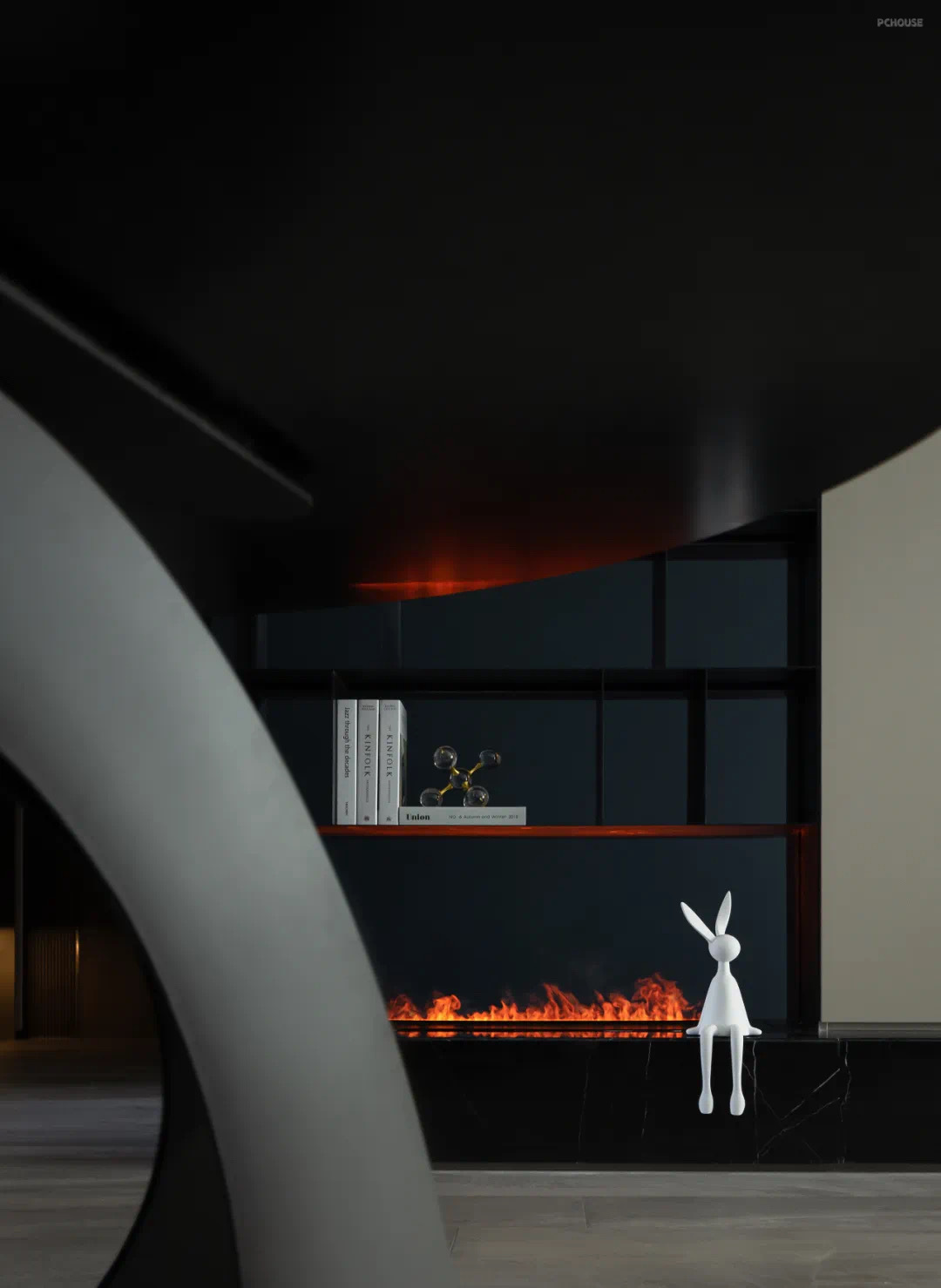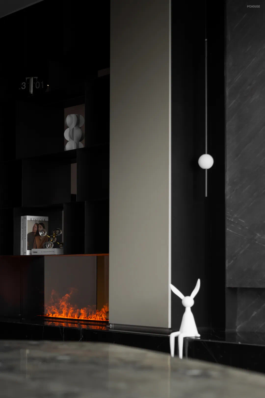 客厅中的电子壁炉,带来氤氲放松的温馨之感,摇曳的烟雾火焰提升了空间视觉暖度,在优雅与舒适之间达到平衡之美。