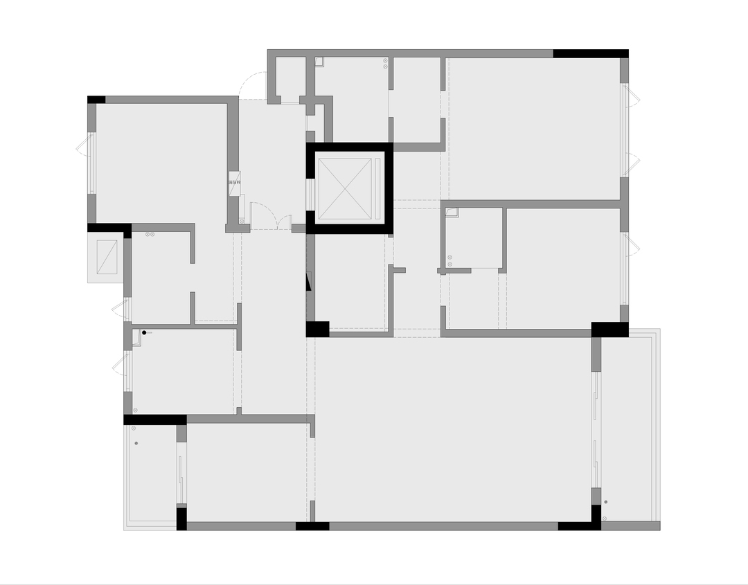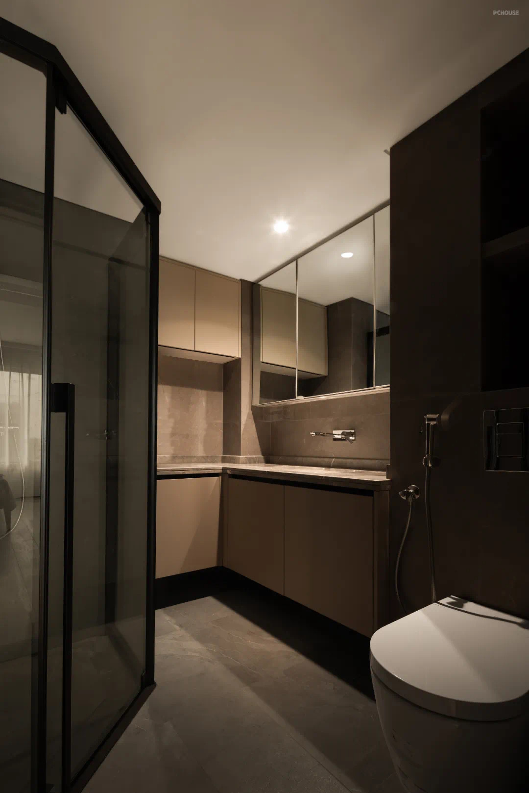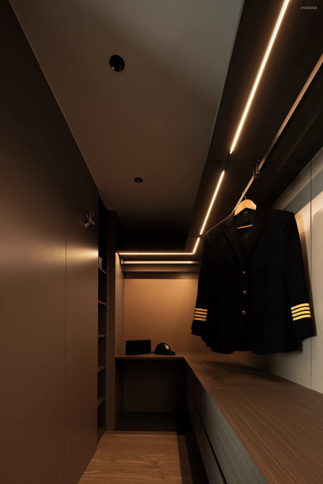 取消户型居中位置的卫生间,改变进入主卧的位置,利用过道做成了鱼小姐的衣帽间,同时满足了两个独立衣帽间的需求。