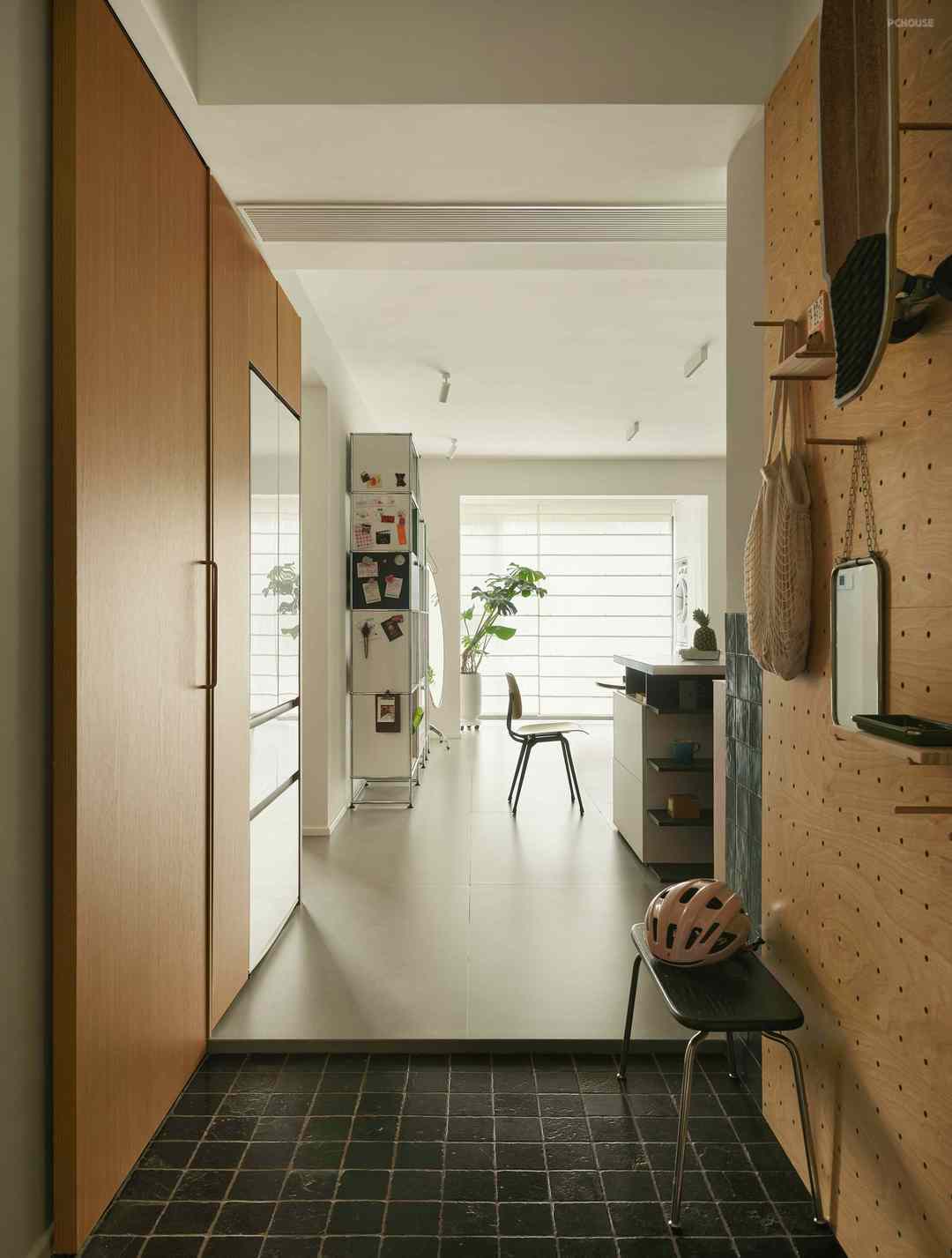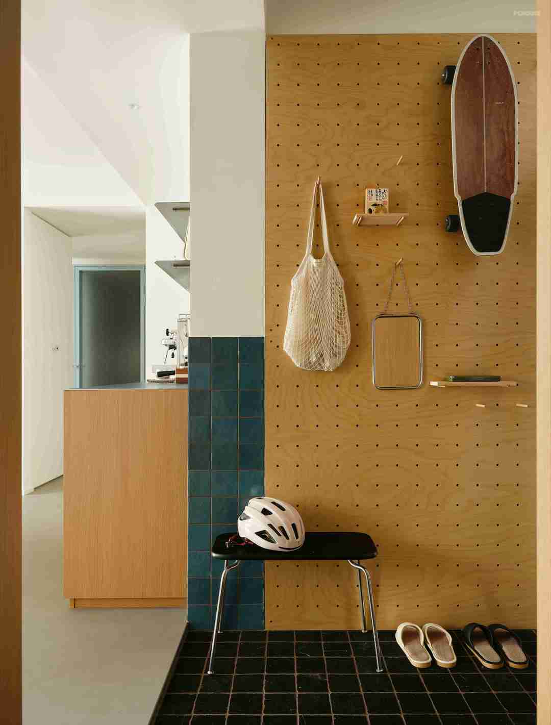 进门右手边做了洞洞板,不占用空间的同时满足了小物件放置需求。