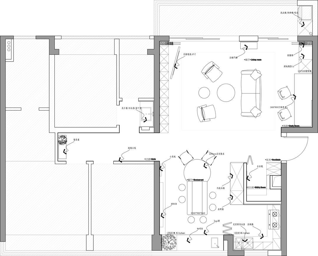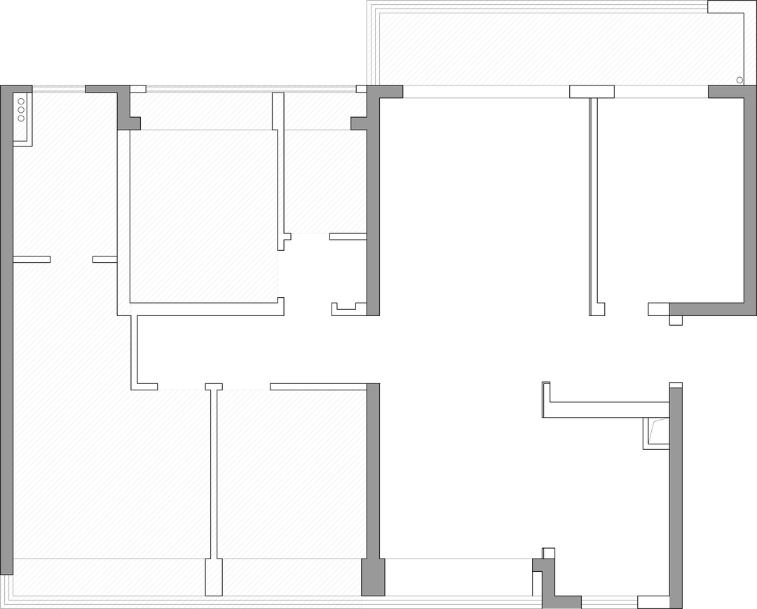 本期案例是位于前海润峯府的精装改造,原始户型格局中规中矩,较为方正。在接到委托者的需求之后,设计师在设计构想的时候,希望本案例能营造更具烟火气及温度的调性,强调人与空间的和谐关系,让空间更加灵动。