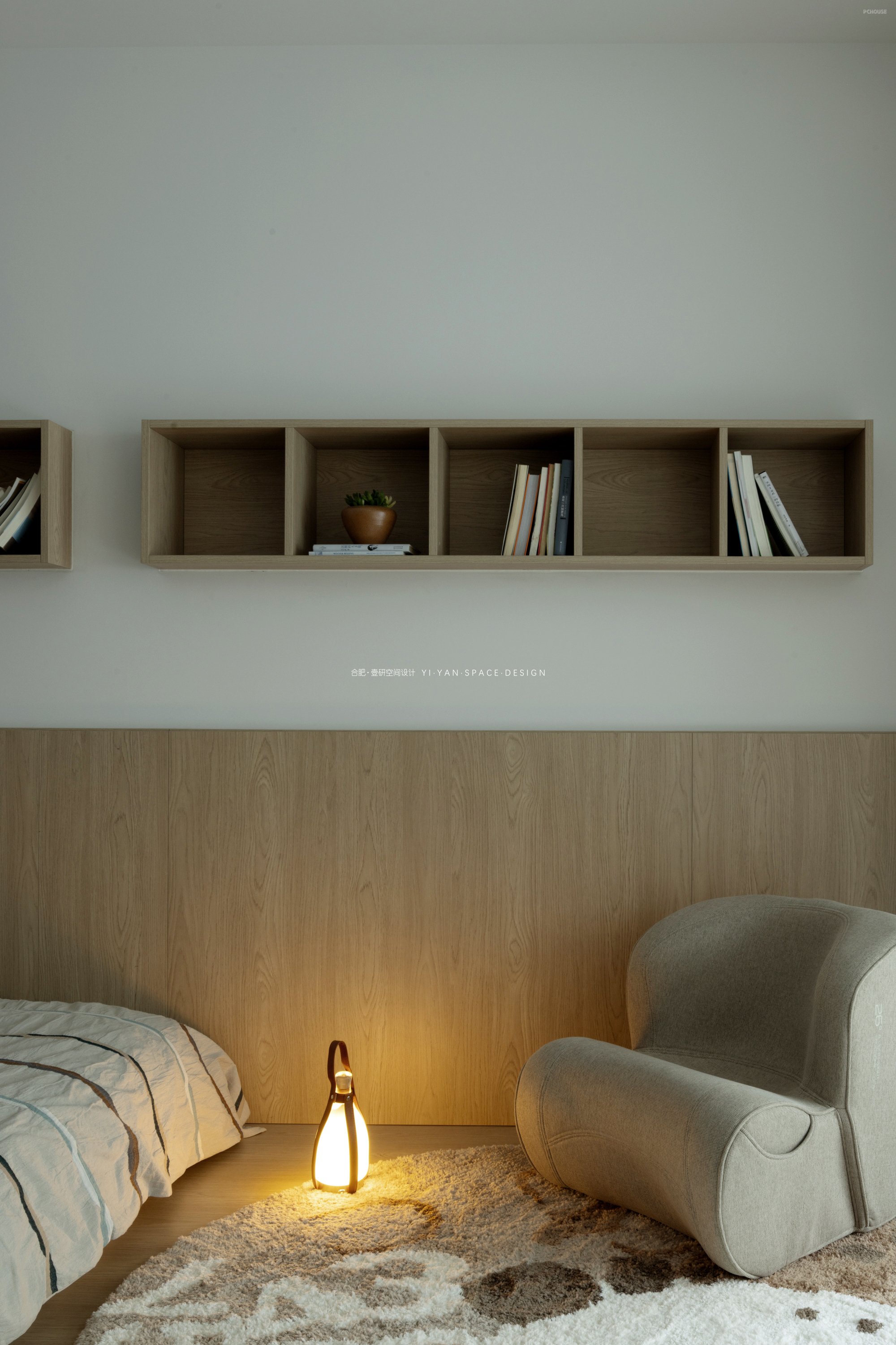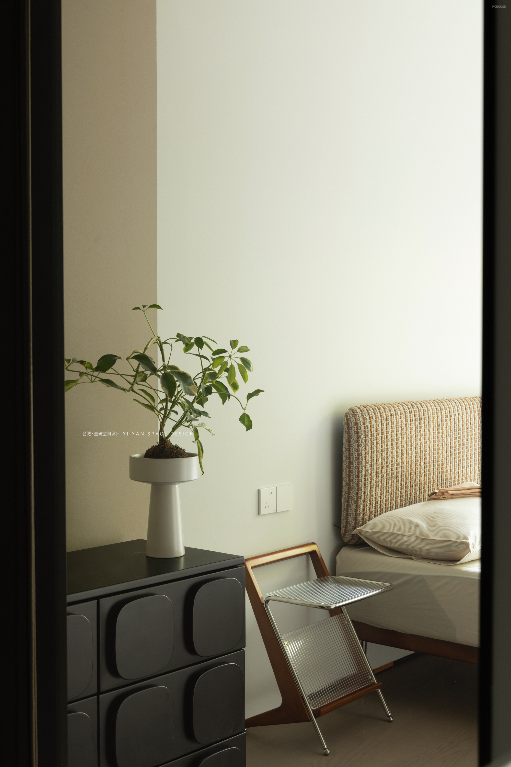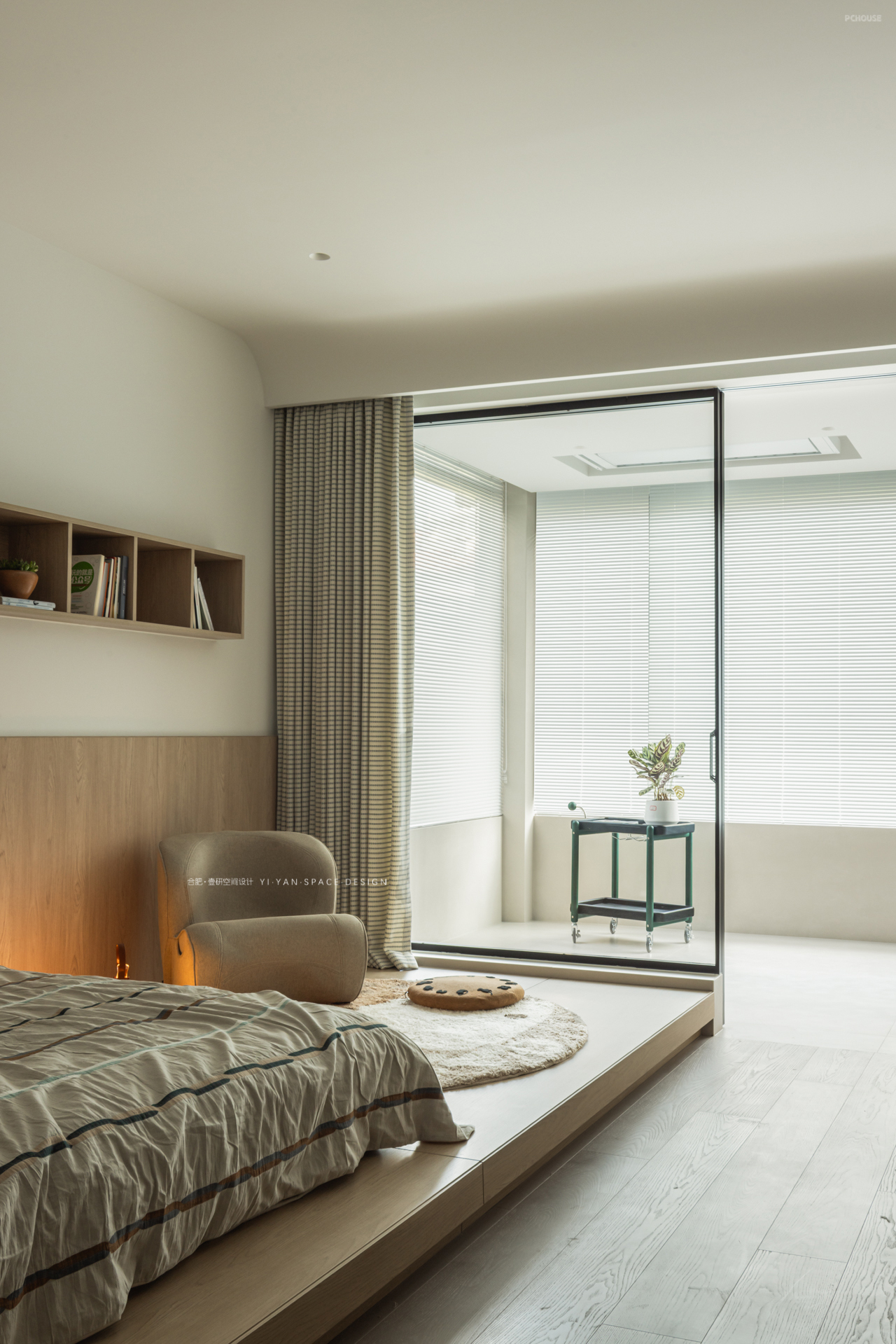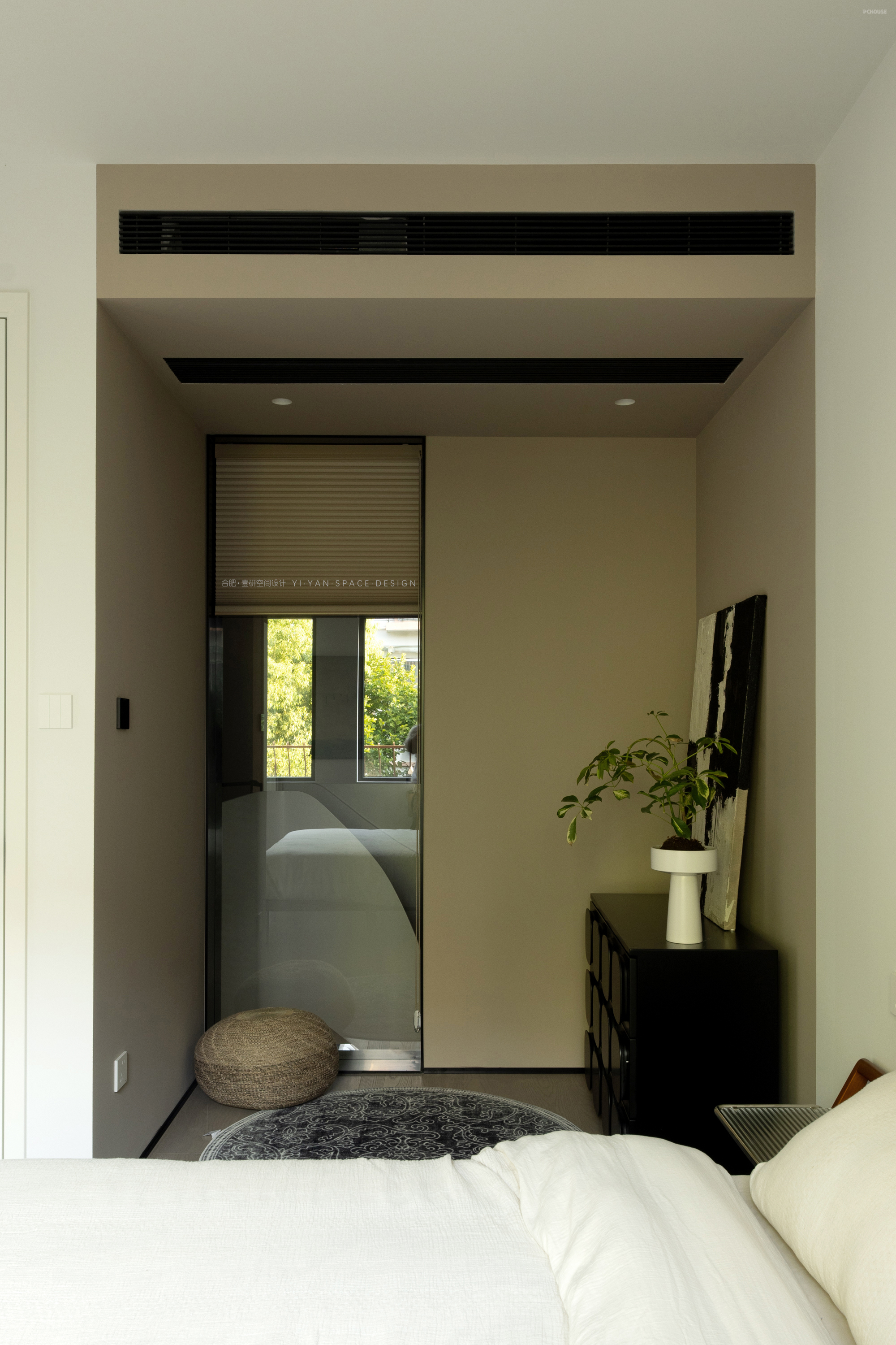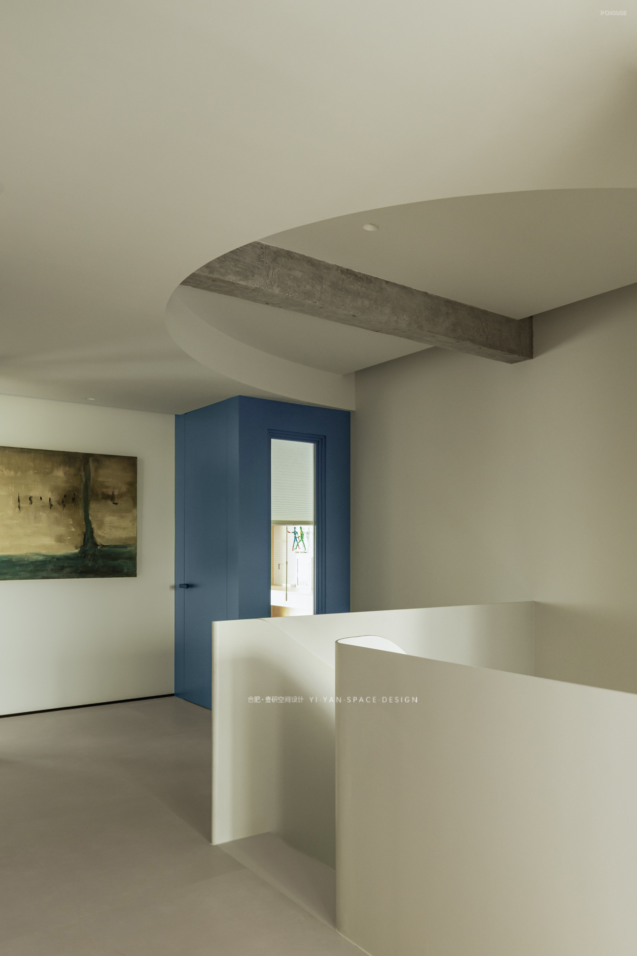 我们在二楼客房与楼梯间的隔墙开设玻璃视窗,通过「借景引光」的设计思维,实现功能与美学的双重提升,让空间在分隔中仍保持对话。既是对功能问题的回应,亦是对生活场景的诗意表达。