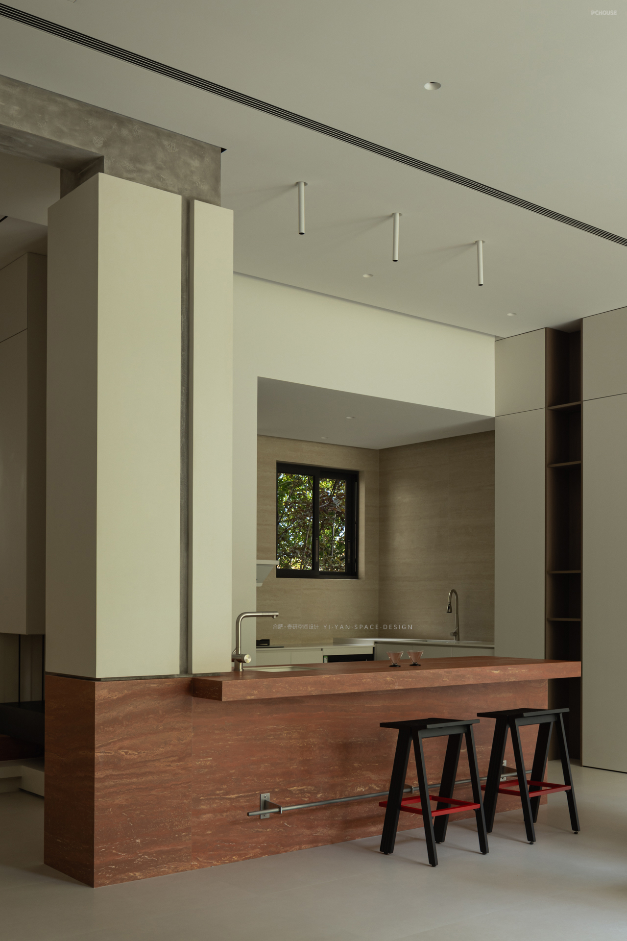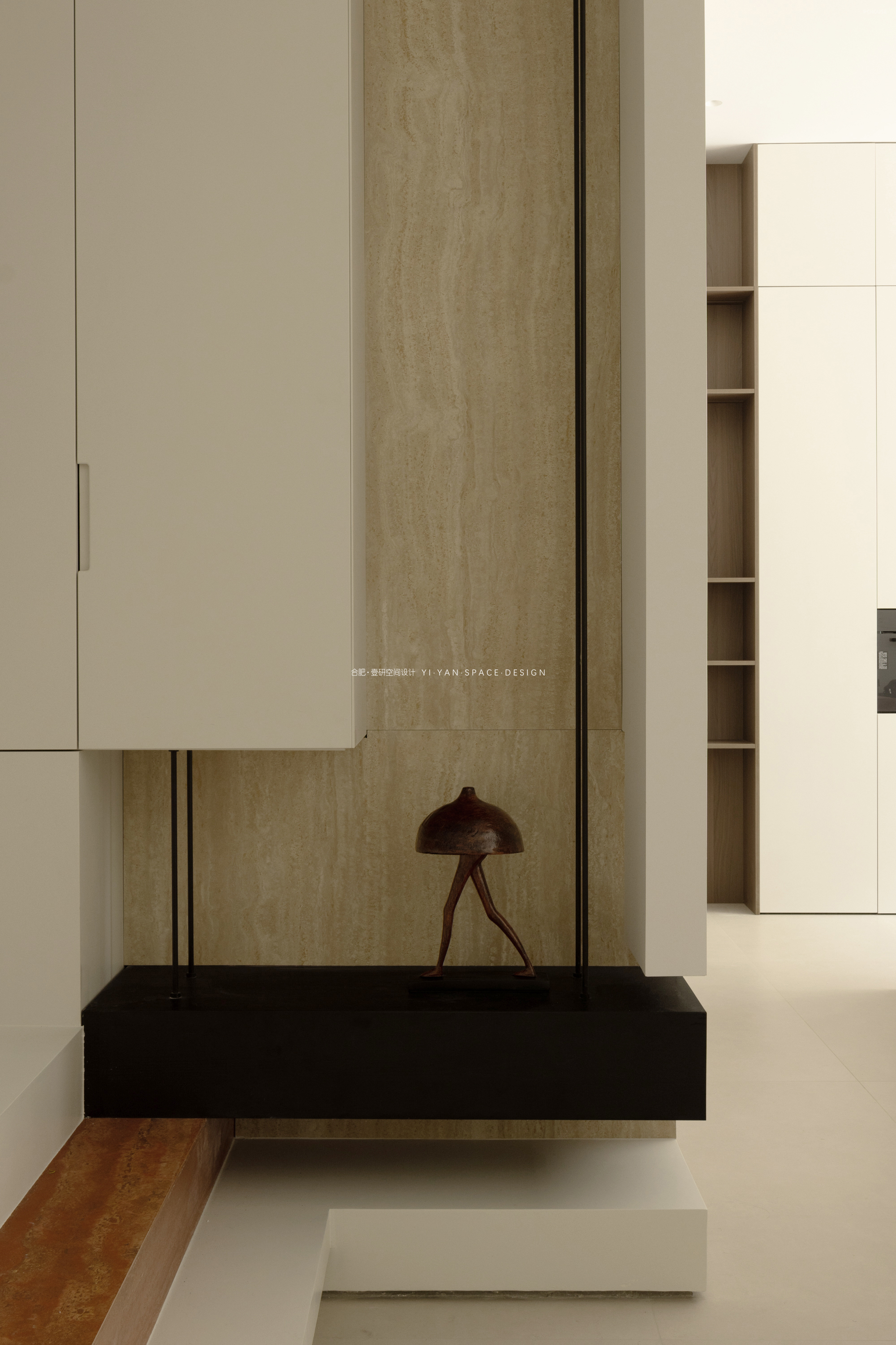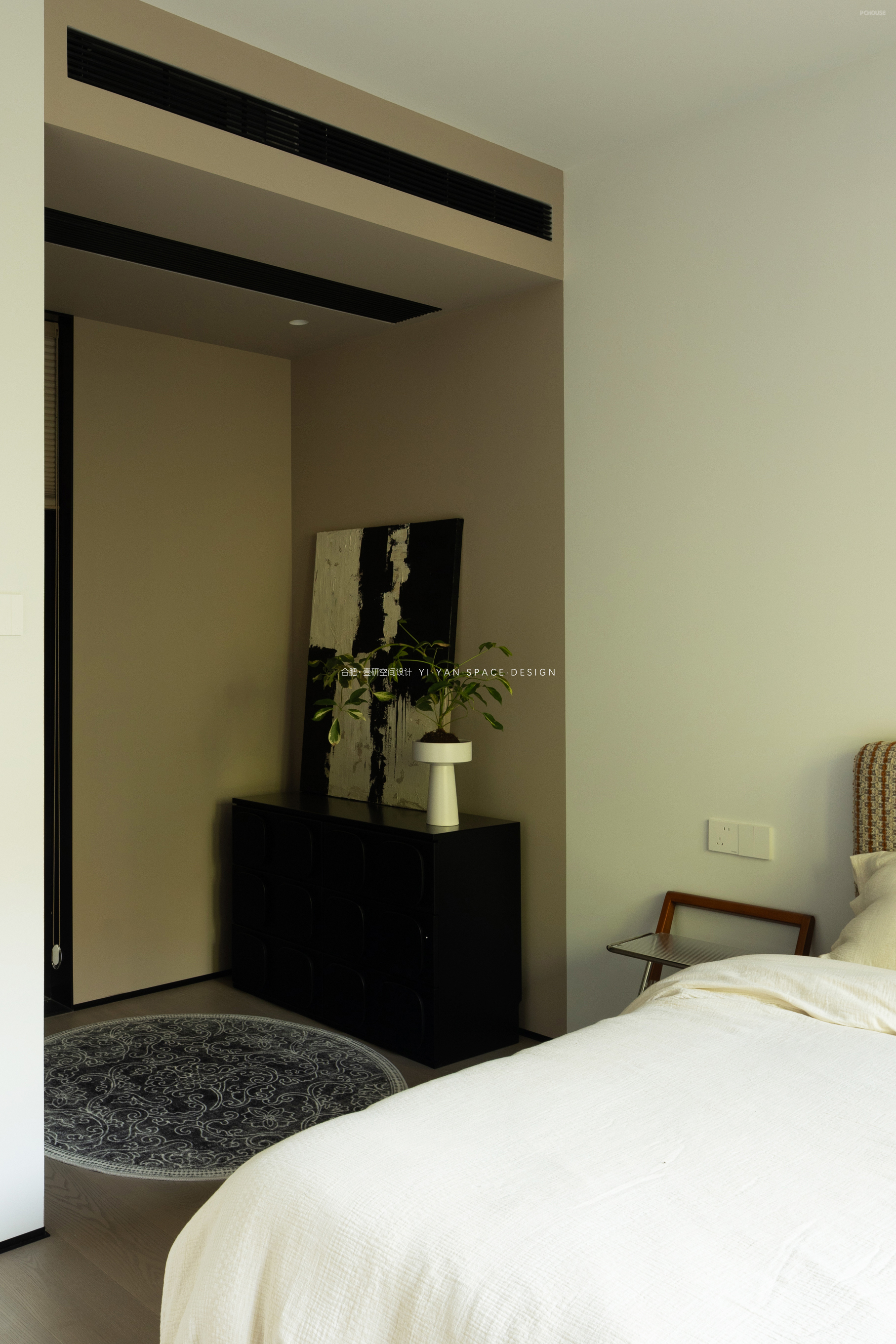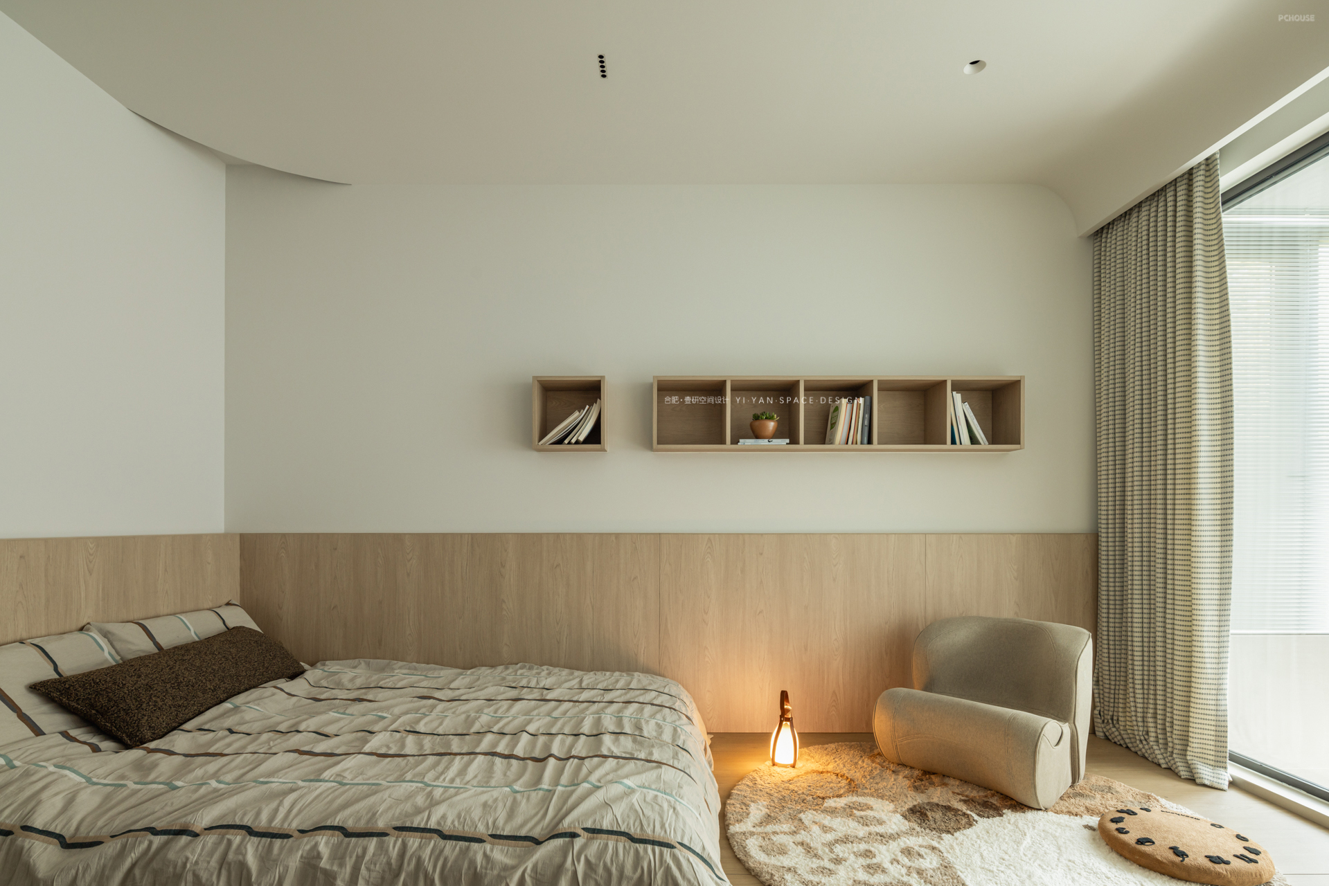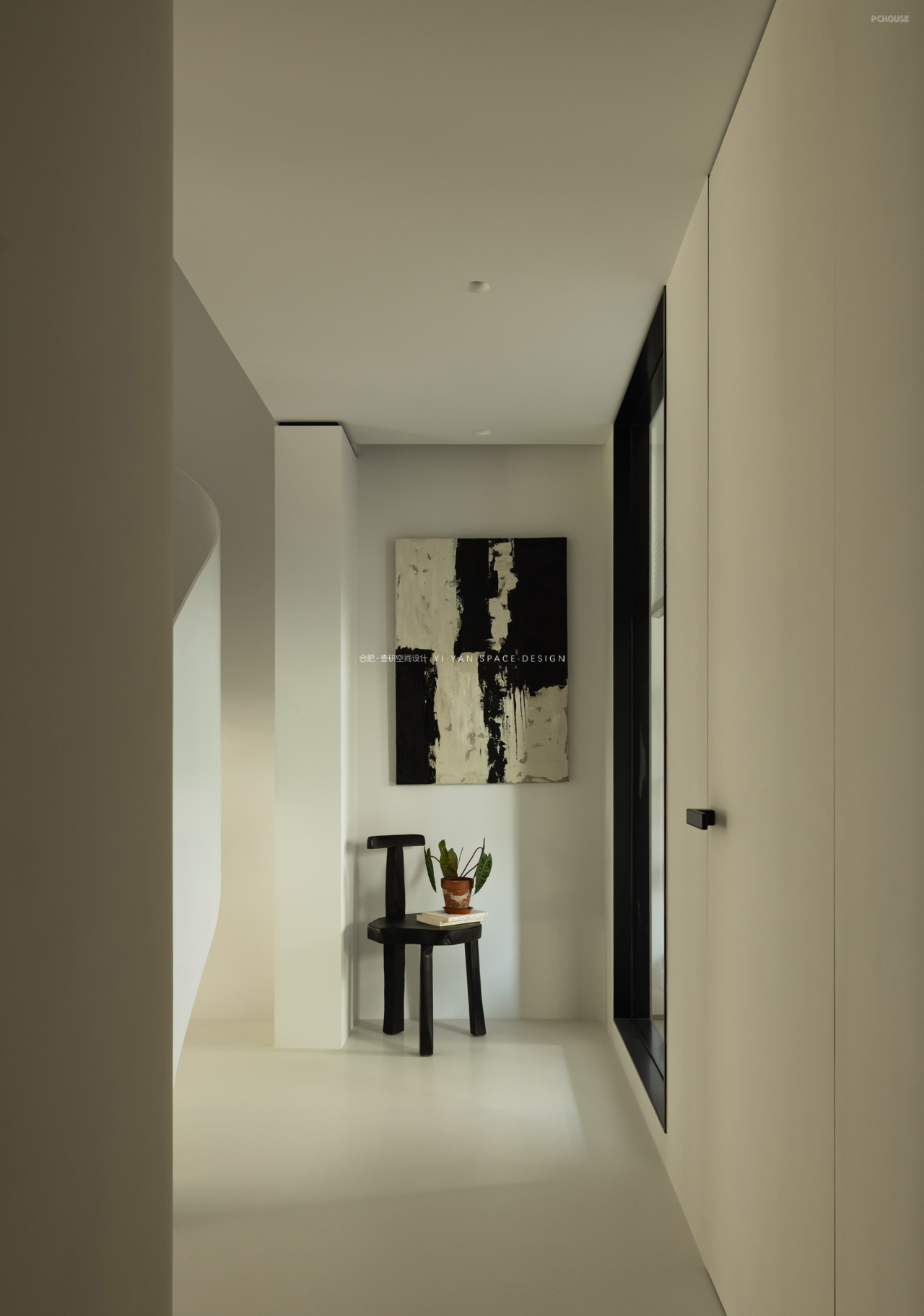 我们在二楼客房与楼梯间的隔墙开设玻璃视窗,通过「借景引光」的设计思维,实现功能与美学的双重提升,让空间在分隔中仍保持对话。既是对功能问题的回应,亦是对生活场景的诗意表达。