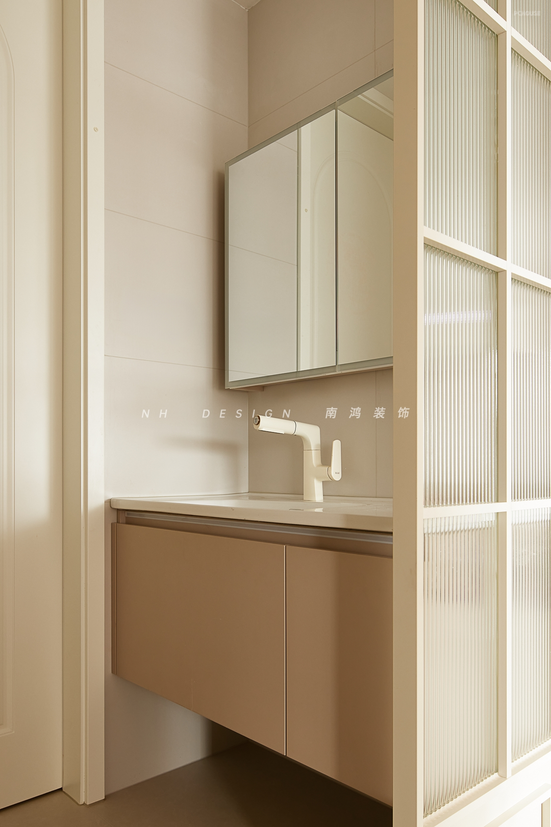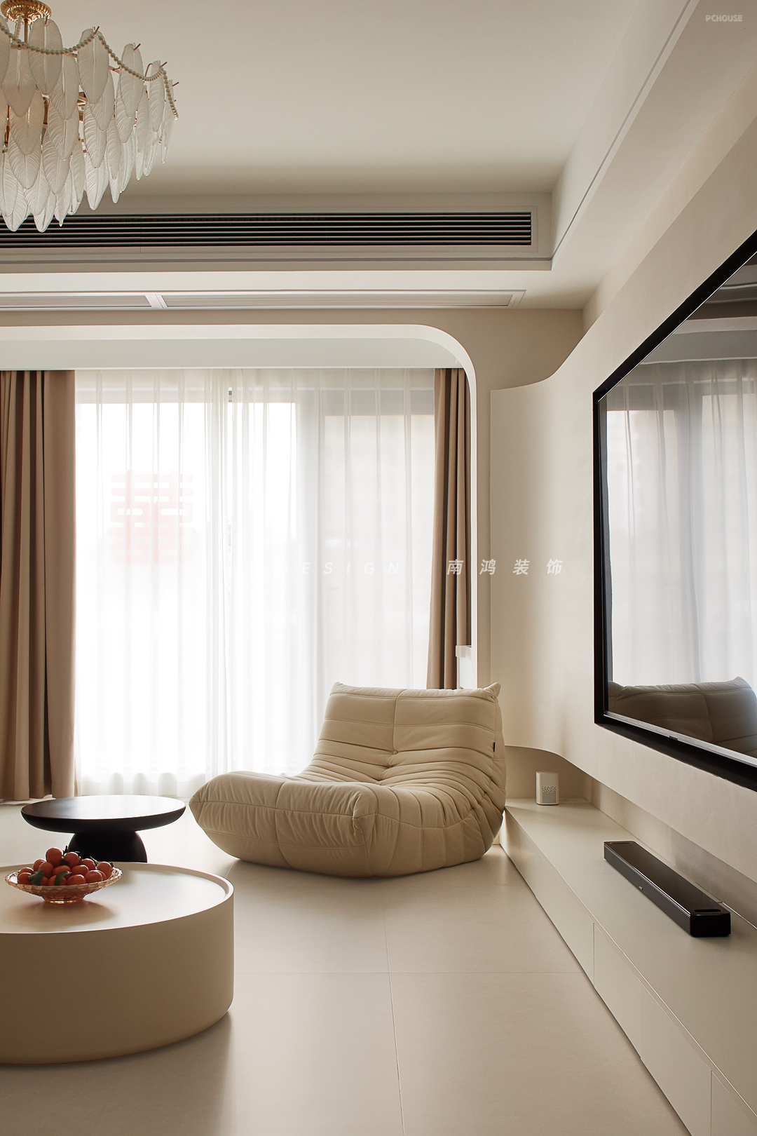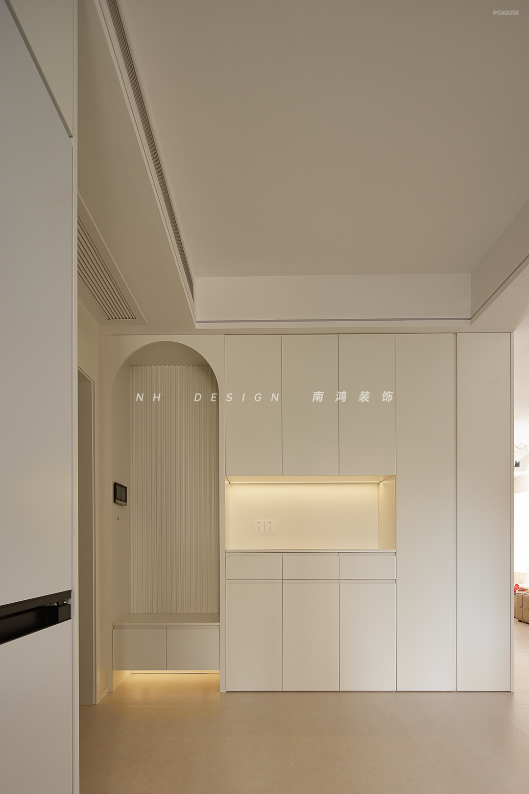 前言: 本案使用温馨的奶油色调,简净通透,屋内采光通风俱佳,营造宜居生活氛围。空间在风格上实现巧妙的混搭,既维持了现代简约的清爽,又通过石膏线条,注入了法式的浪漫情调。