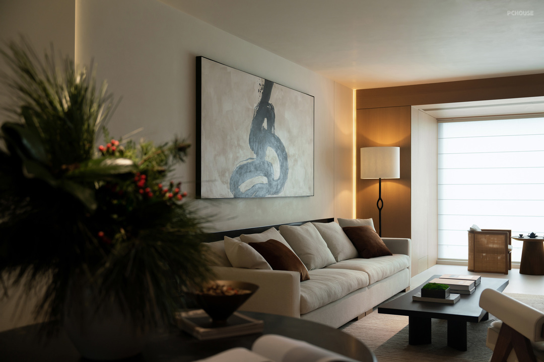 不流于表面,摒弃多余装饰,以留白赋予空间思考。将自然的肌理、光影的流转和空间的呼吸感,化作触手可及的奢华,在岁月中愈显醇厚。