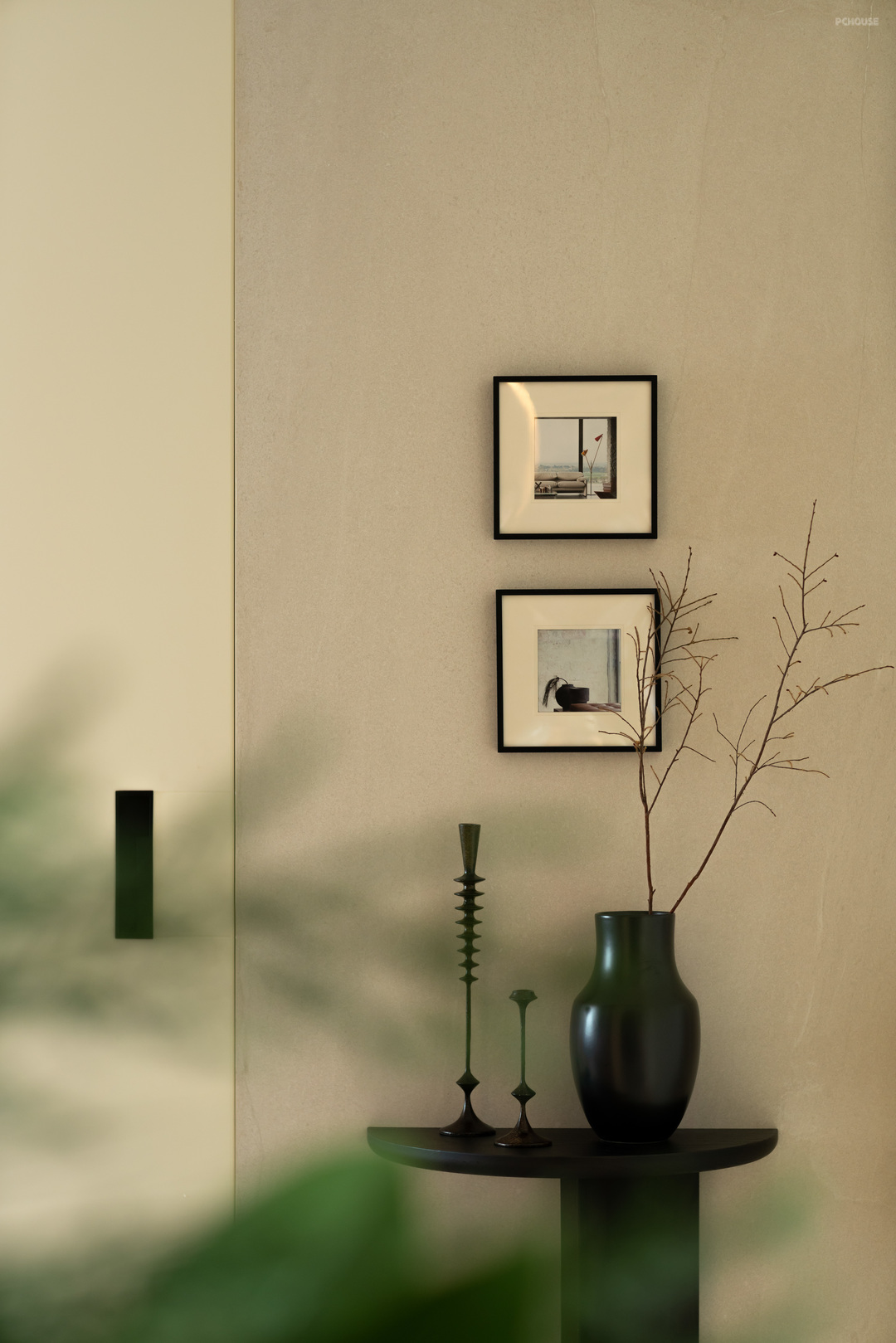 这方寸之间的墨色小景,是归家的第一声静默问候。它不喧哗,却以极致的克制与留白,瞬间涤荡尘嚣,将心绪引入“幽玄”之境——于最微小的细节中,见天地,见永恒。玄关的仪式感与东方隐奢的精神内核,在此处无声抵达。