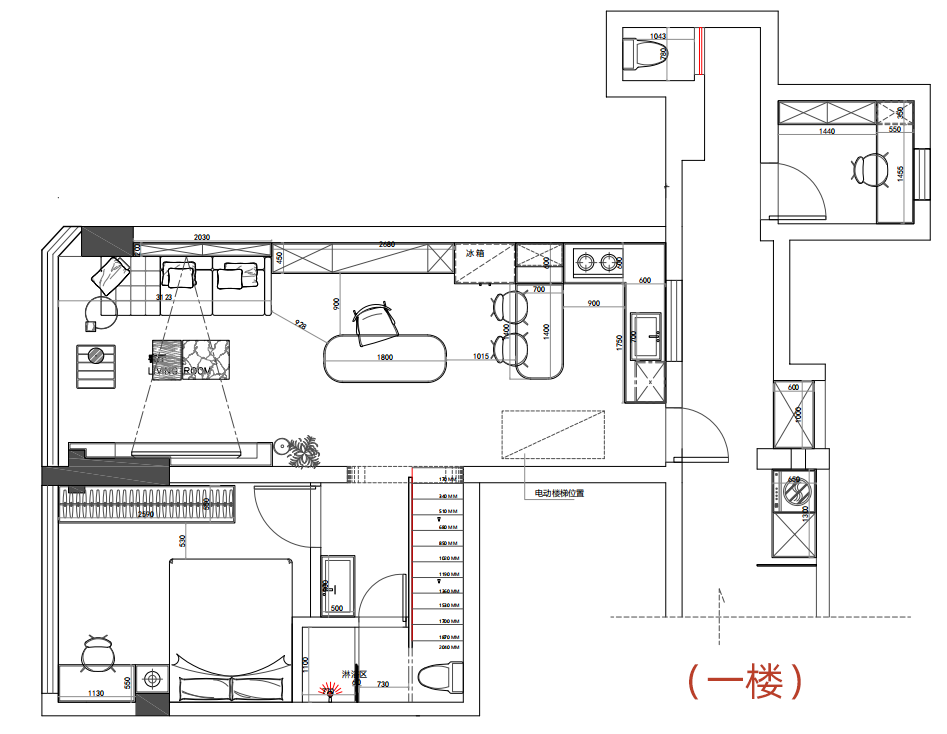 3、改变楼梯位置,楼梯底部增加储物;