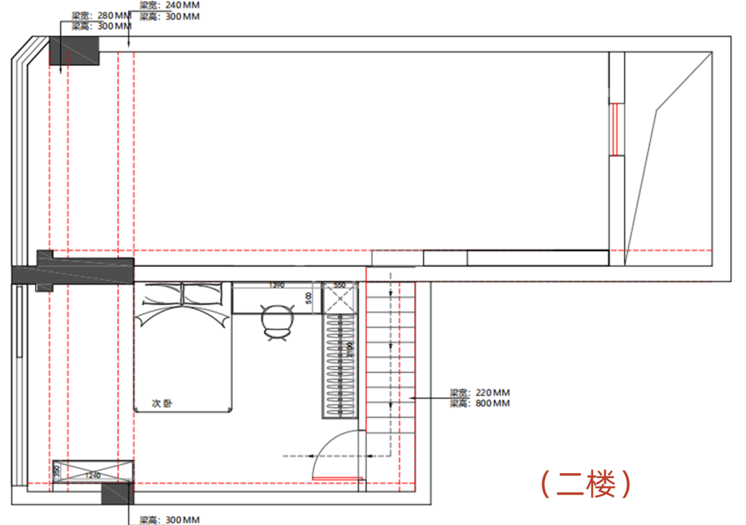 2、二层有极其低矮的房梁;