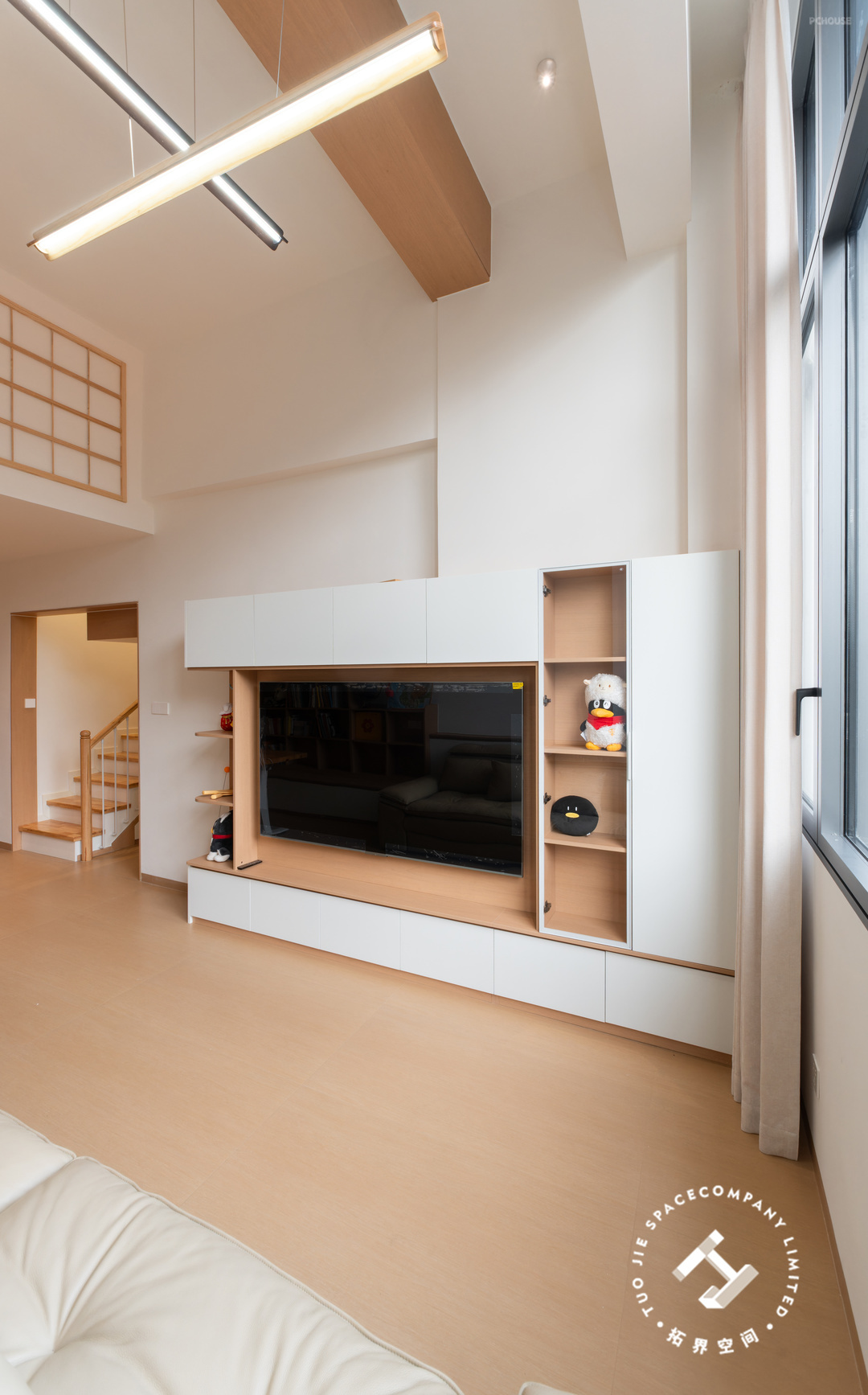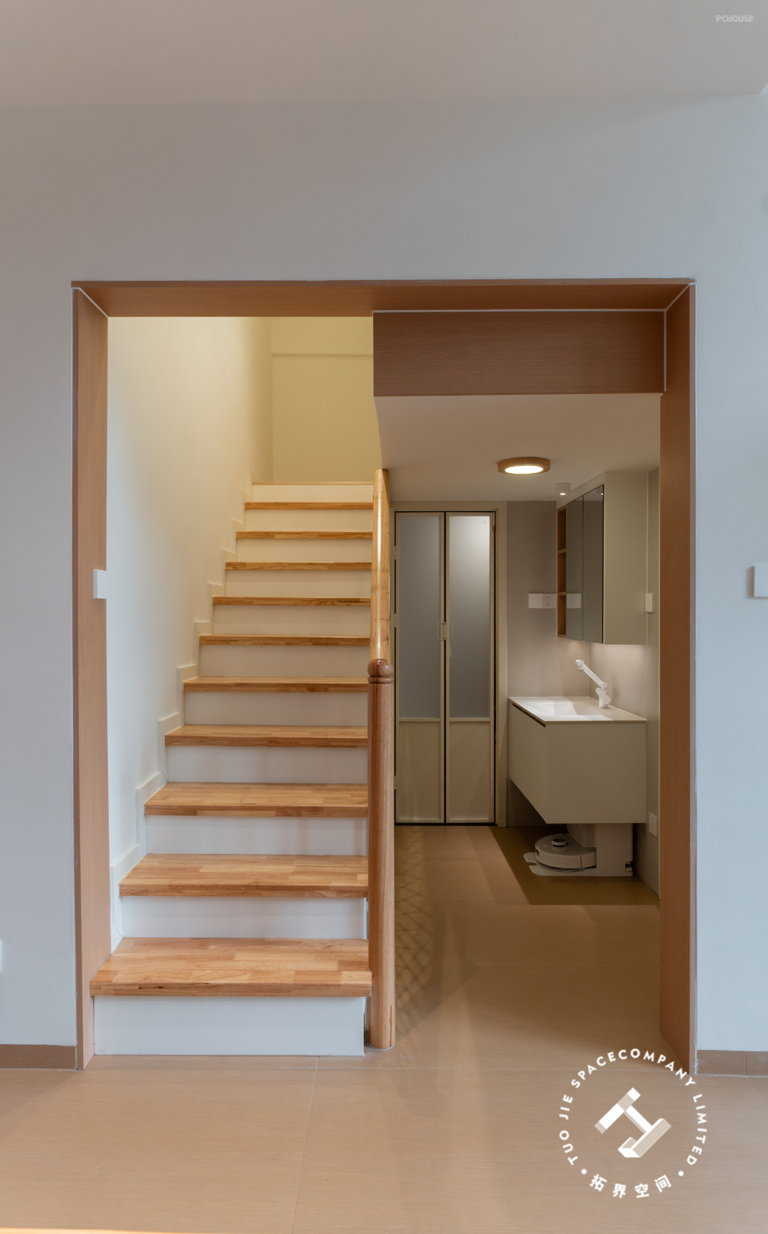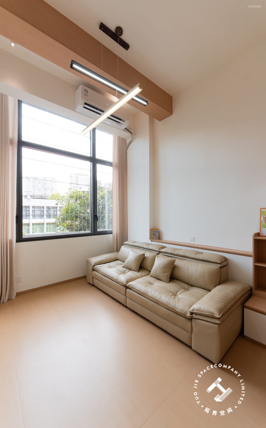 整屋使用低饱和度的浅色系与浅木色交织,简约的家具搭配简洁的线条,给人一种舒适放松的感觉。