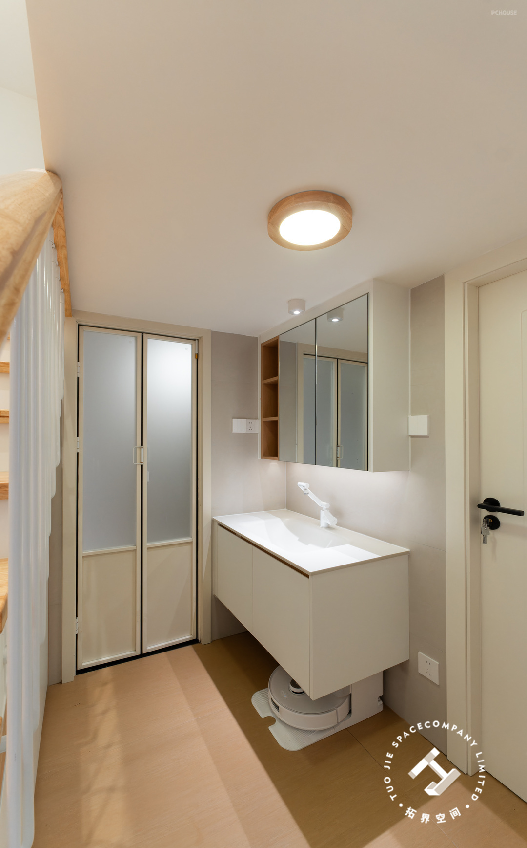 4、洗漱台外置,并利用楼梯底扩大卫生间使用面积。