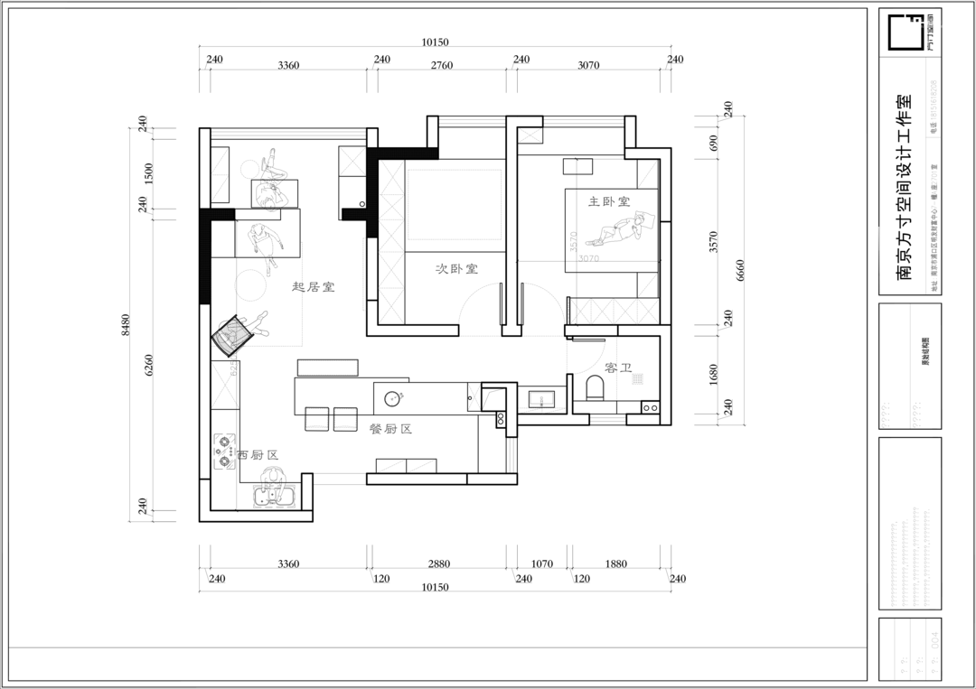 3、客房空间狭小,为了满足更多储物收纳空间,将客房做成地台床,同时设计一整面墙的储物柜。