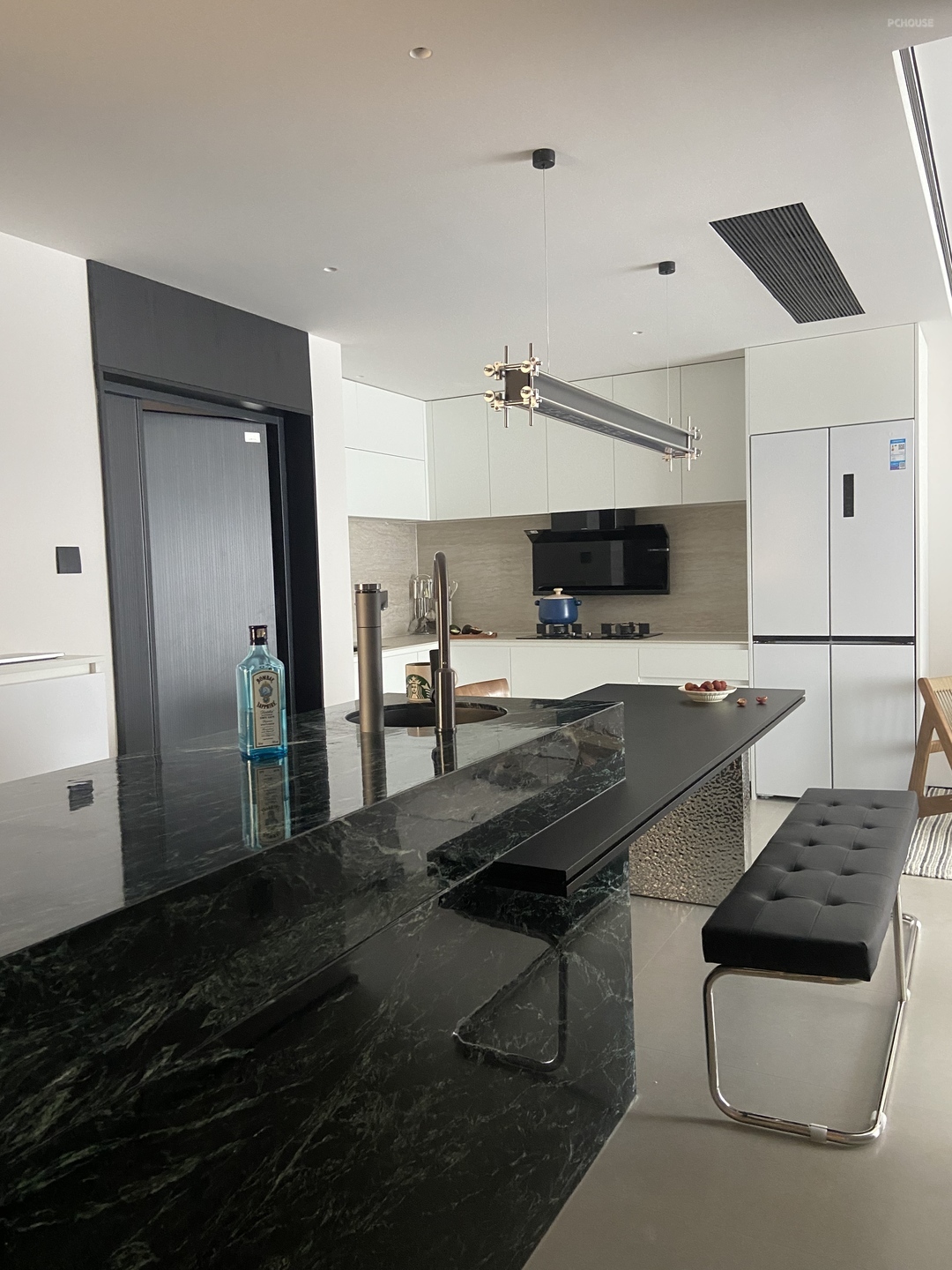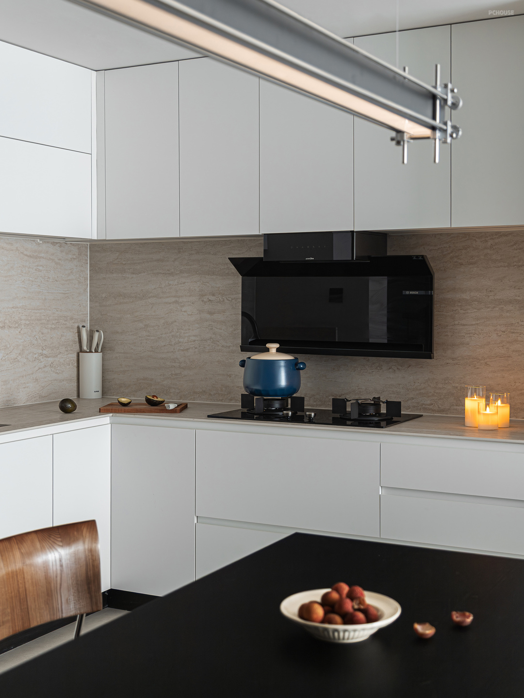 空间重塑,小户型了也拥有了2.4m长岛台+1.7m长的餐桌,在这个空间里,将餐桌与岛台相结合,是对美好生活方式的期待