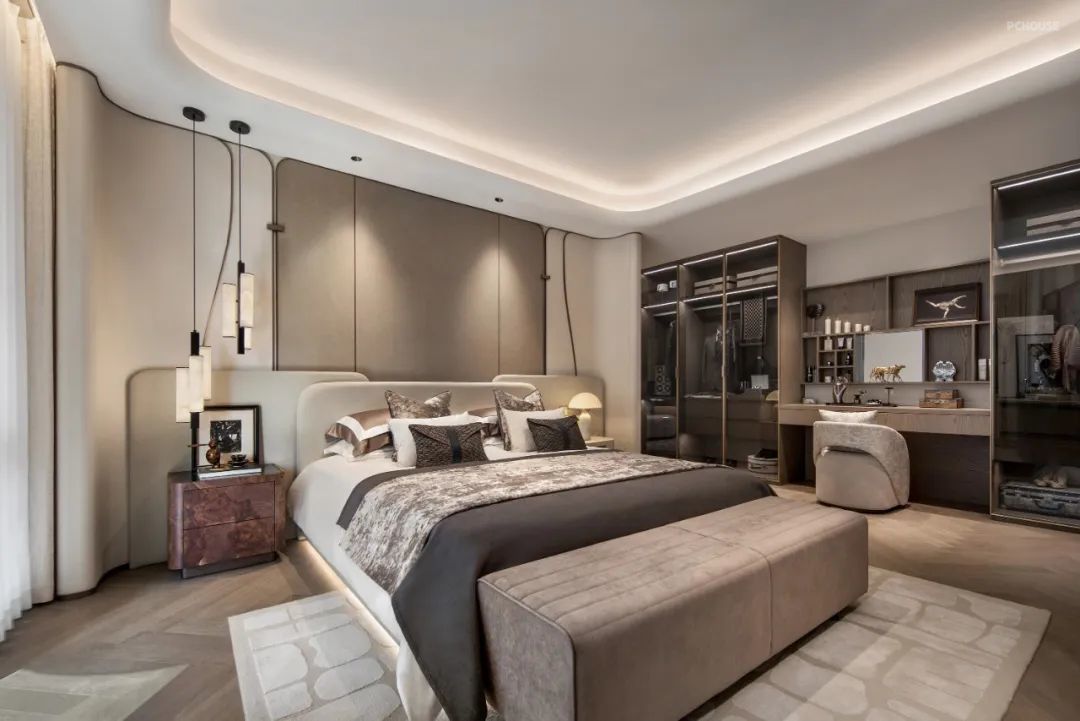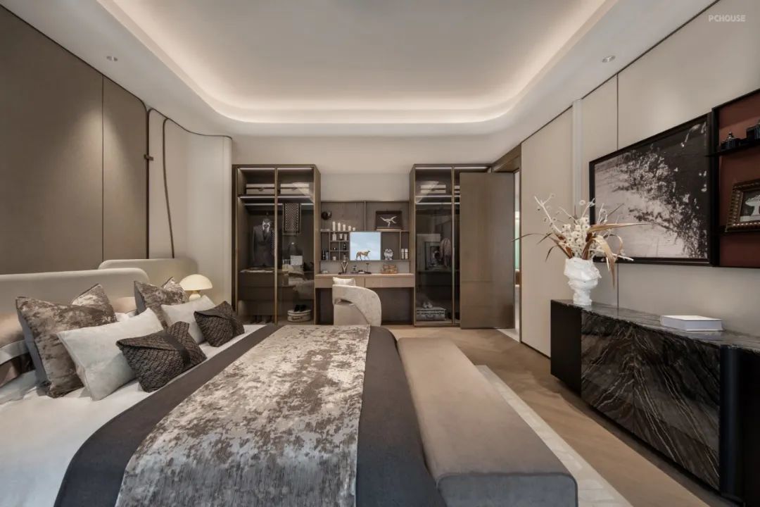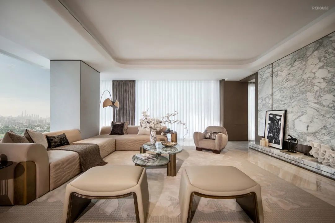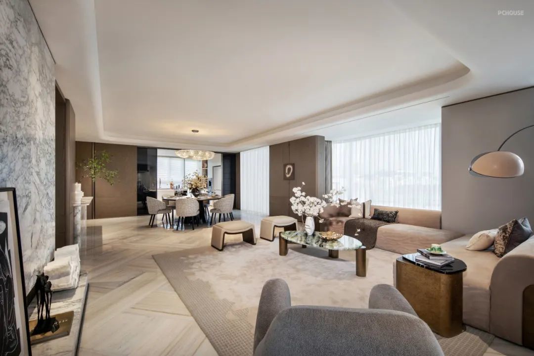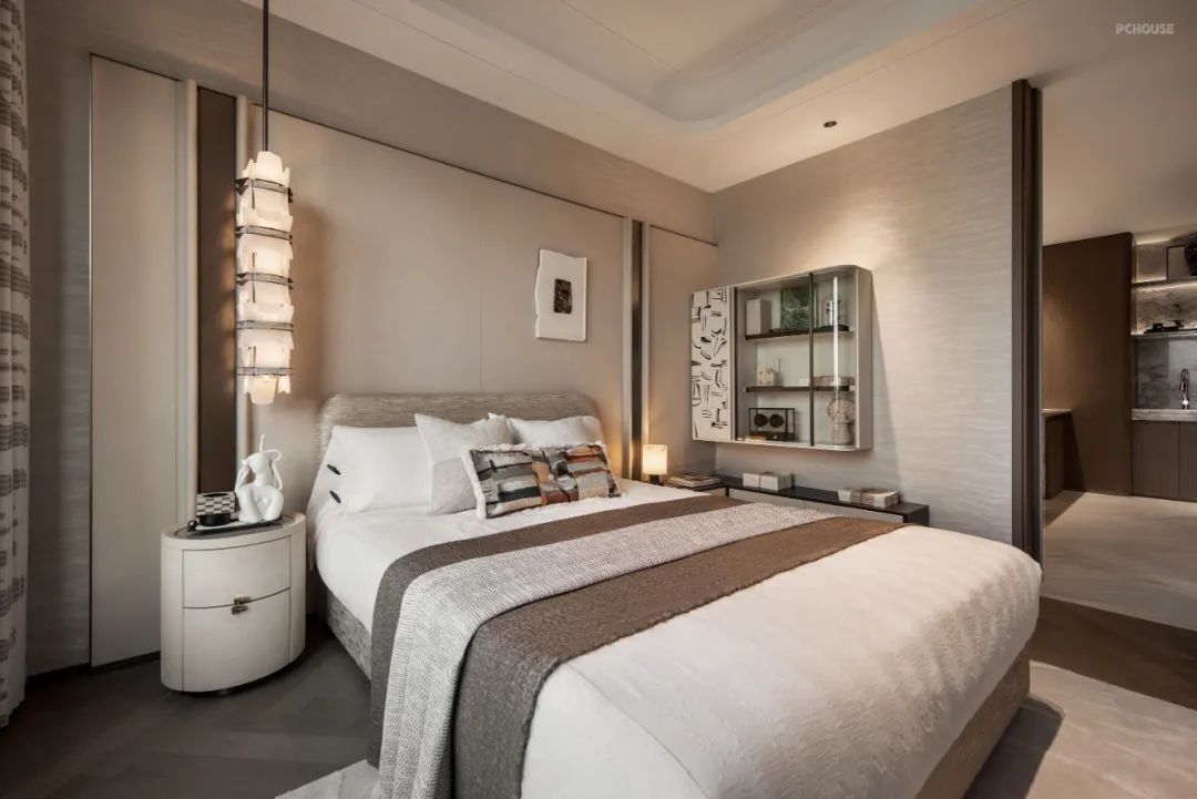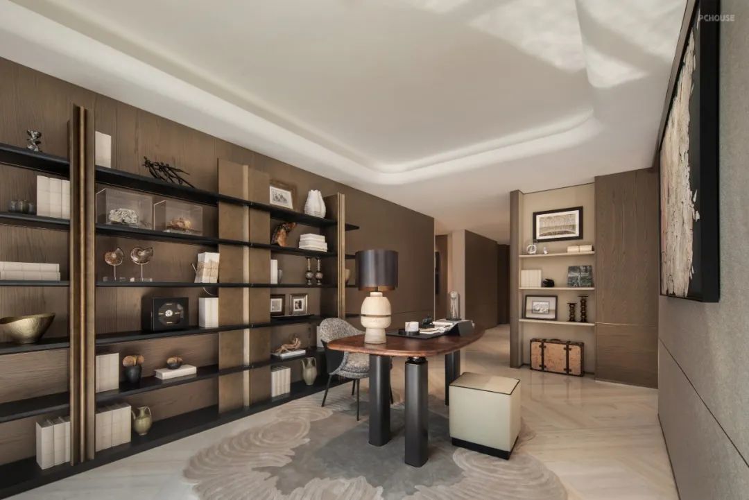 大面积留白与简洁线条形成呼吸感,搭配艺术装置与精致软装,于松弛自然中唤醒居者与空间的深层情感链接。浅木纹理如岁月的叙事,与光影一同将这份生活美学沉淀为温润的时光印记。