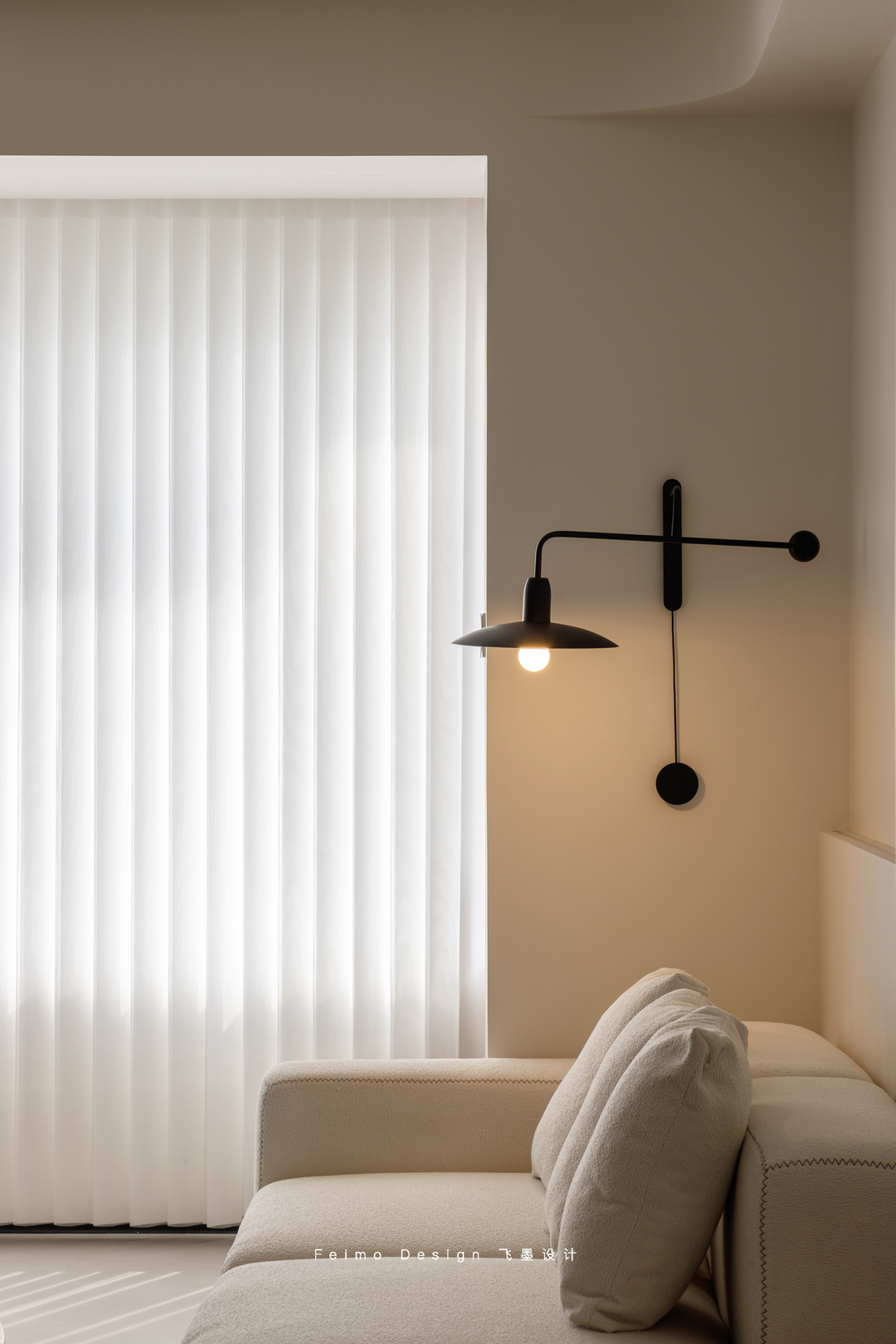 客厅以暖白为背景,木色为点缀,虽是小户型竖厅,但也呈现出空旷感。家里的细节也丝毫不少。放假窝在沙发休憩片刻,点亮壁灯,温暖的灯光,高级的触感给予家的温柔丰富的色彩