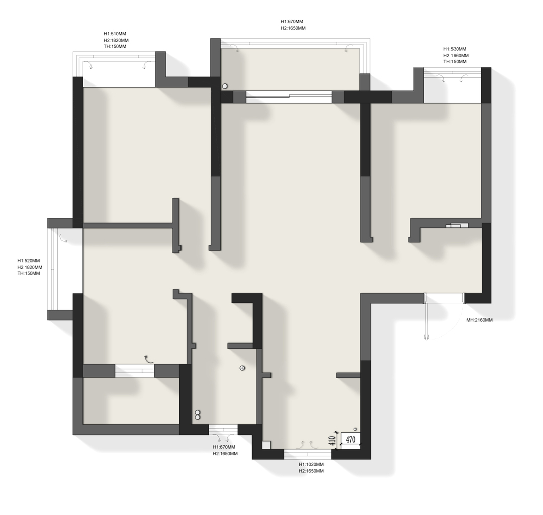 ②主卧和相邻次卧打通,改造成舒适的大套间,保留一间儿童房。