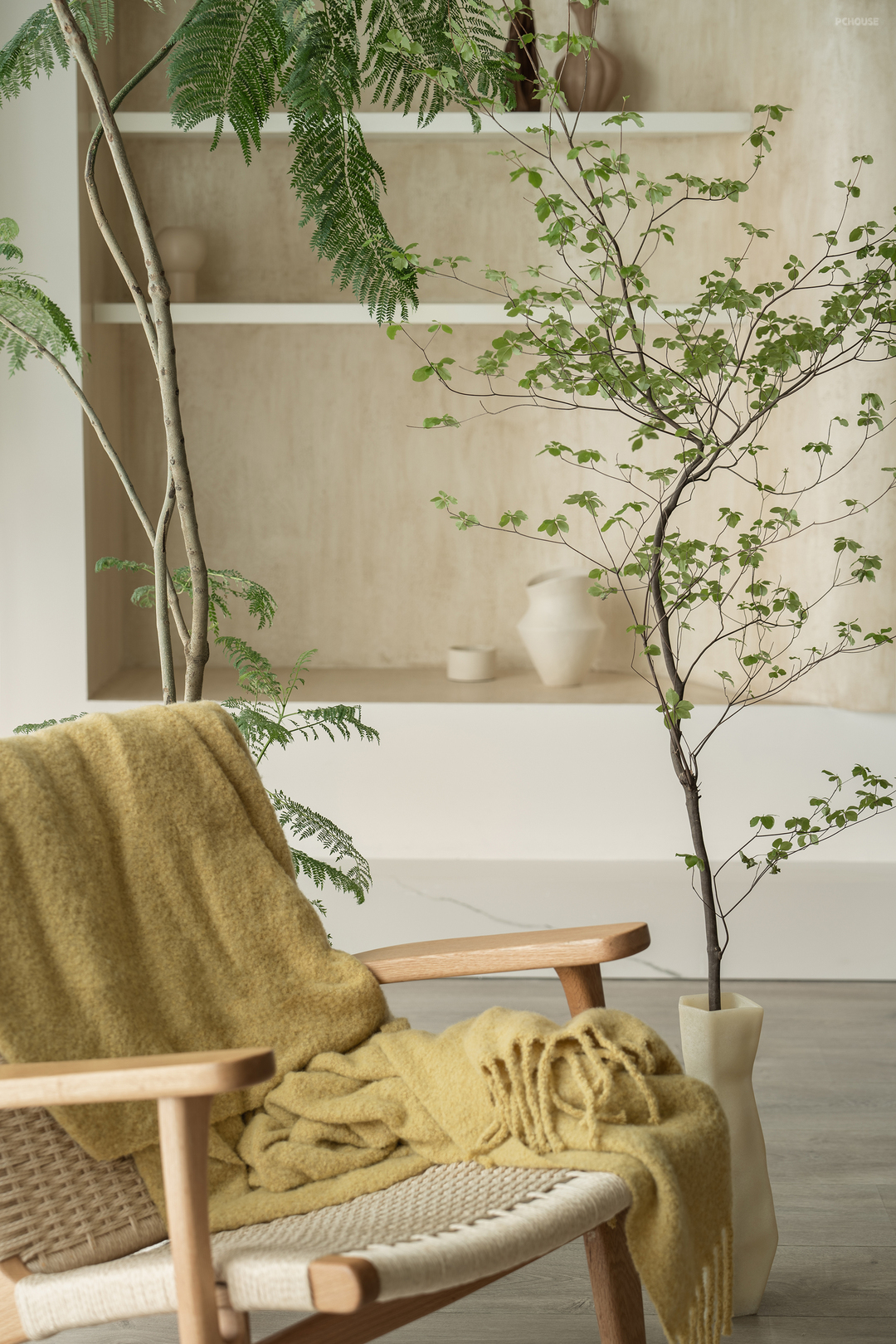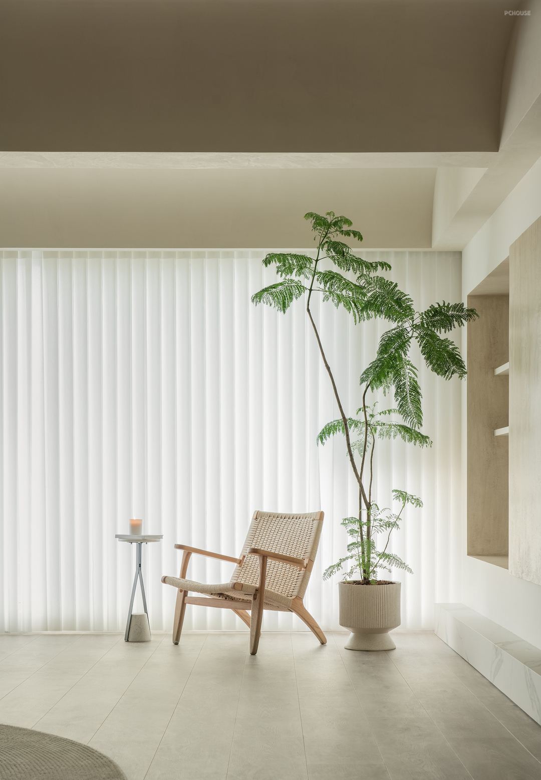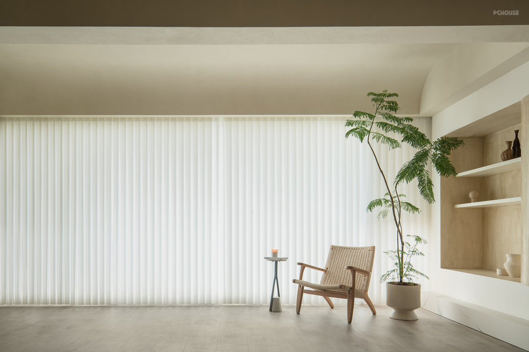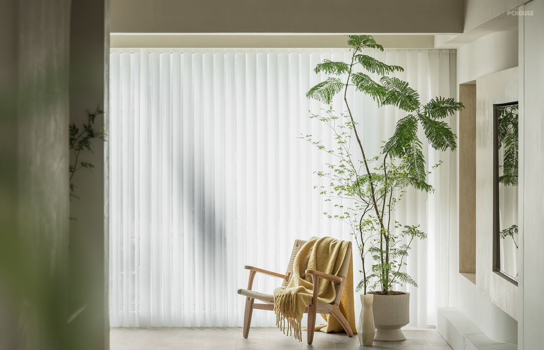 窗边舒适的一角,放一把休闲椅,搭配柔软的毯子和生机盎然的绿植,让人可以在阳光下放松阅读休息,享受片刻的宁静与悠闲。