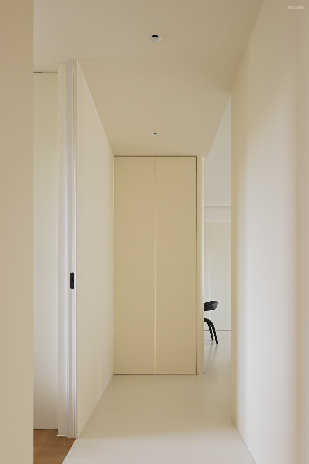 墙面微水泥的肌理,通过不同光线产生丰富的纹理效果,形成一种引人探索的过道空间。