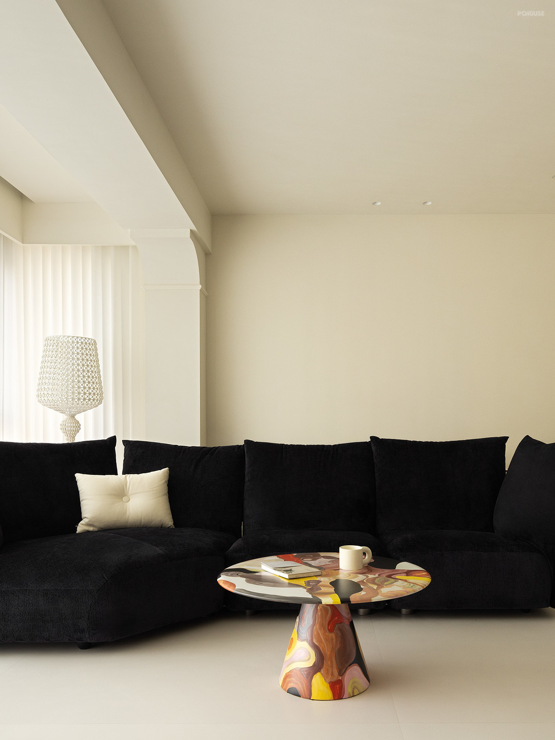 意大利Edra的花瓣沙发,流线型的设计及舒适的坐感,带来一种温馨而时尚的氛围,搭配荷兰Kooij的油画桌,它是用手工绘制而成的色彩图案,充满着艺术感,与沙发组合一起赋予空间无限遐想。