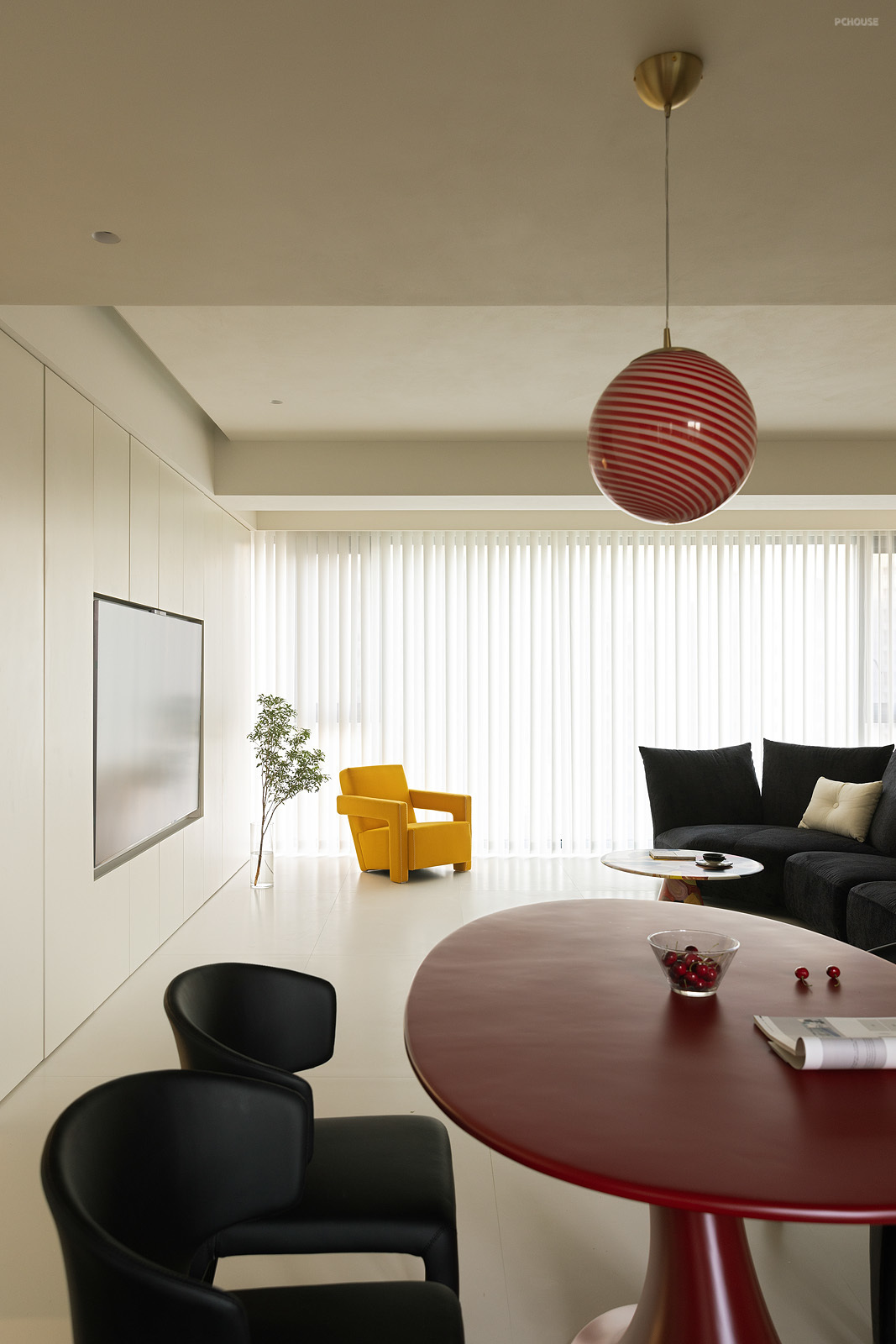 空间的丰富层次在于家具的巧妙搭配,简约的空间背景,在色彩家具的叠加下,共同织就一幅有意境的生活艺术画。