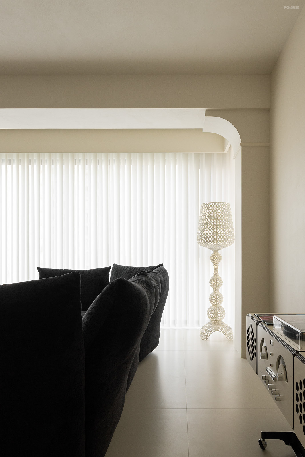 这里摆放Kabuki的蕾丝落地灯,优雅的外观,柔和而浪漫,以及女主最爱的Brionvega笑脸音响,外形经典的复古设计,在家中还能作为一件艺术品来欣赏。