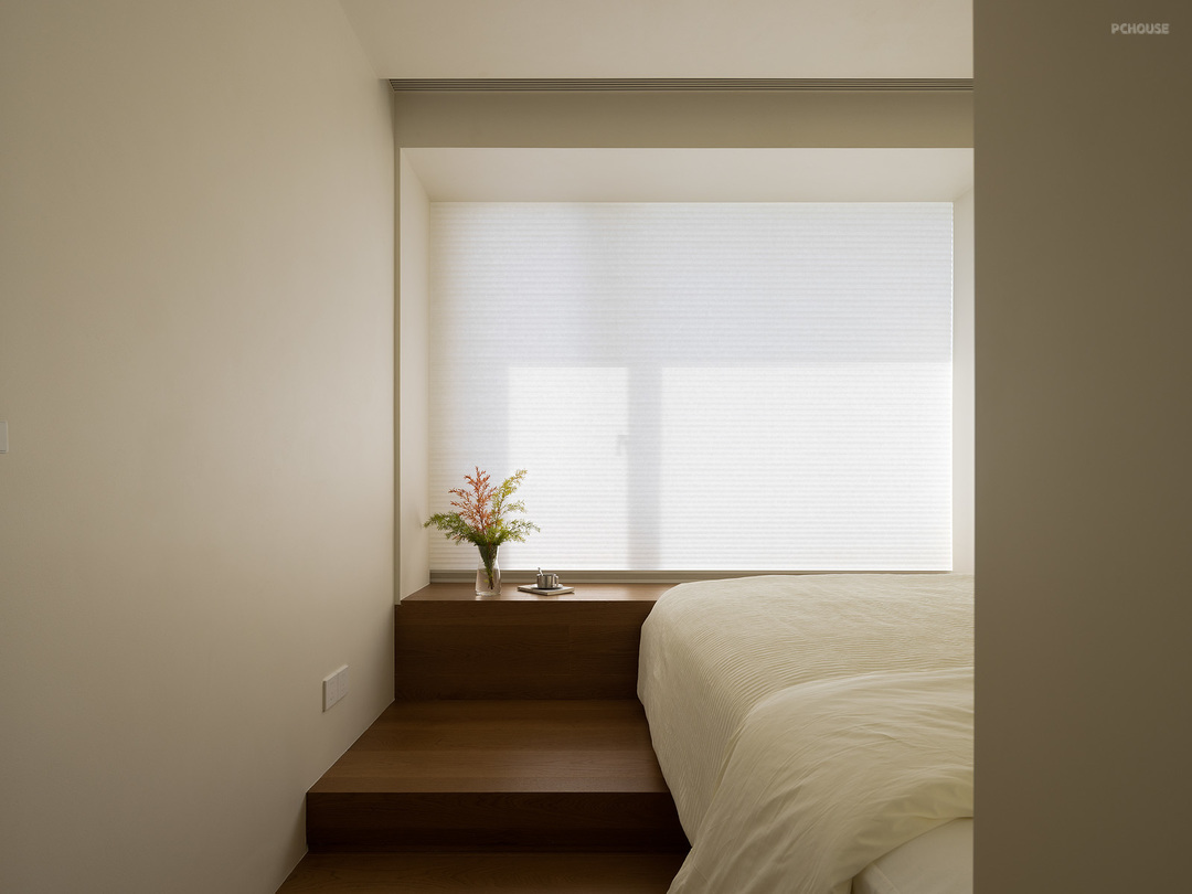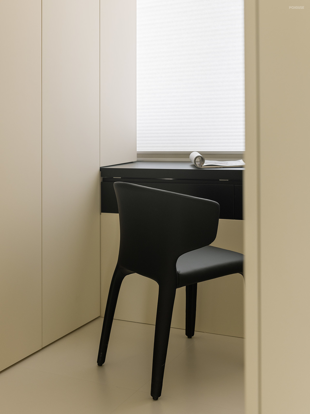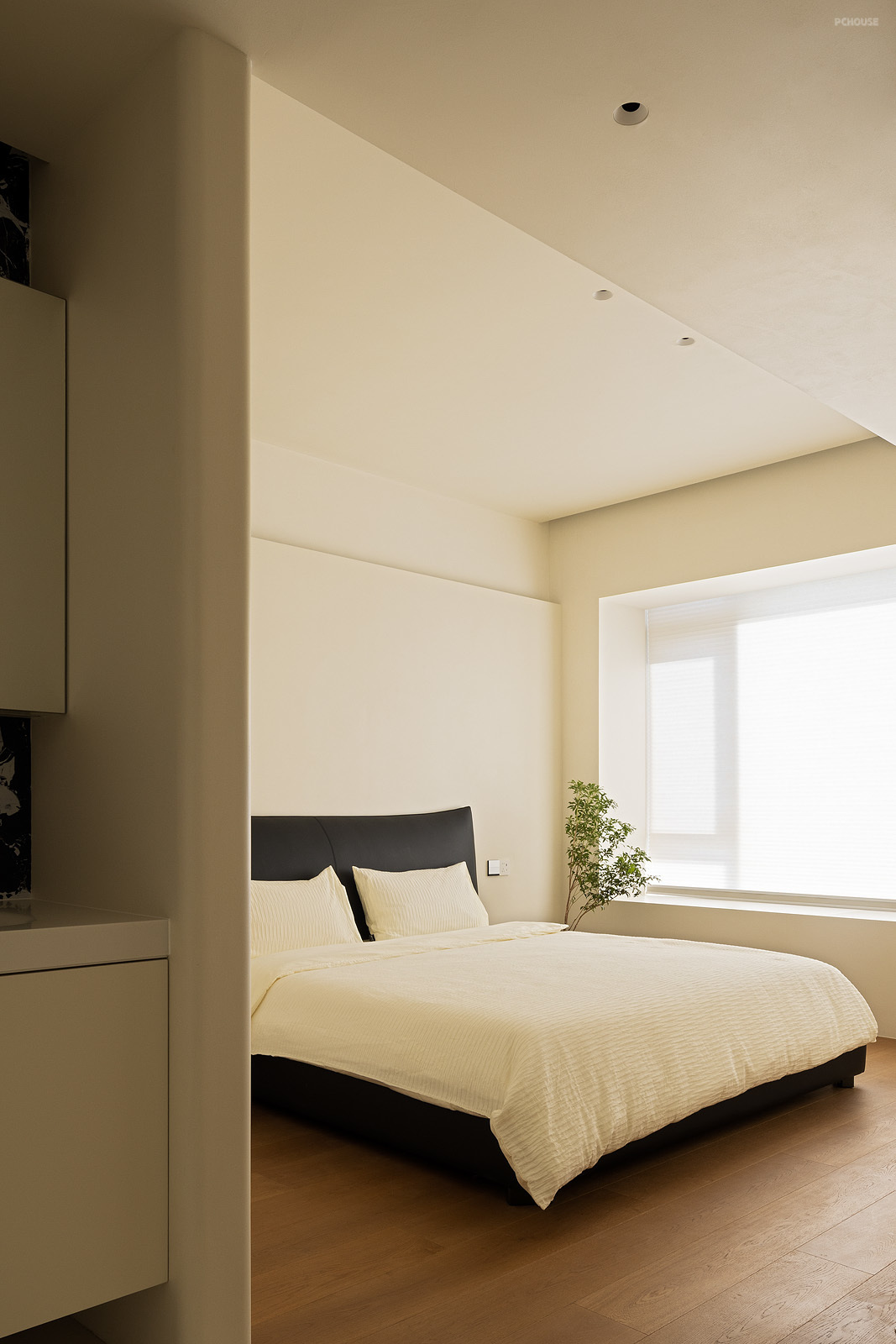 次卧延续着空间的主基调,在保证还原基础的功能下,将窗台打造成适合阅读的安静角落,同时让整个房间的氛围更加宁静和放松。