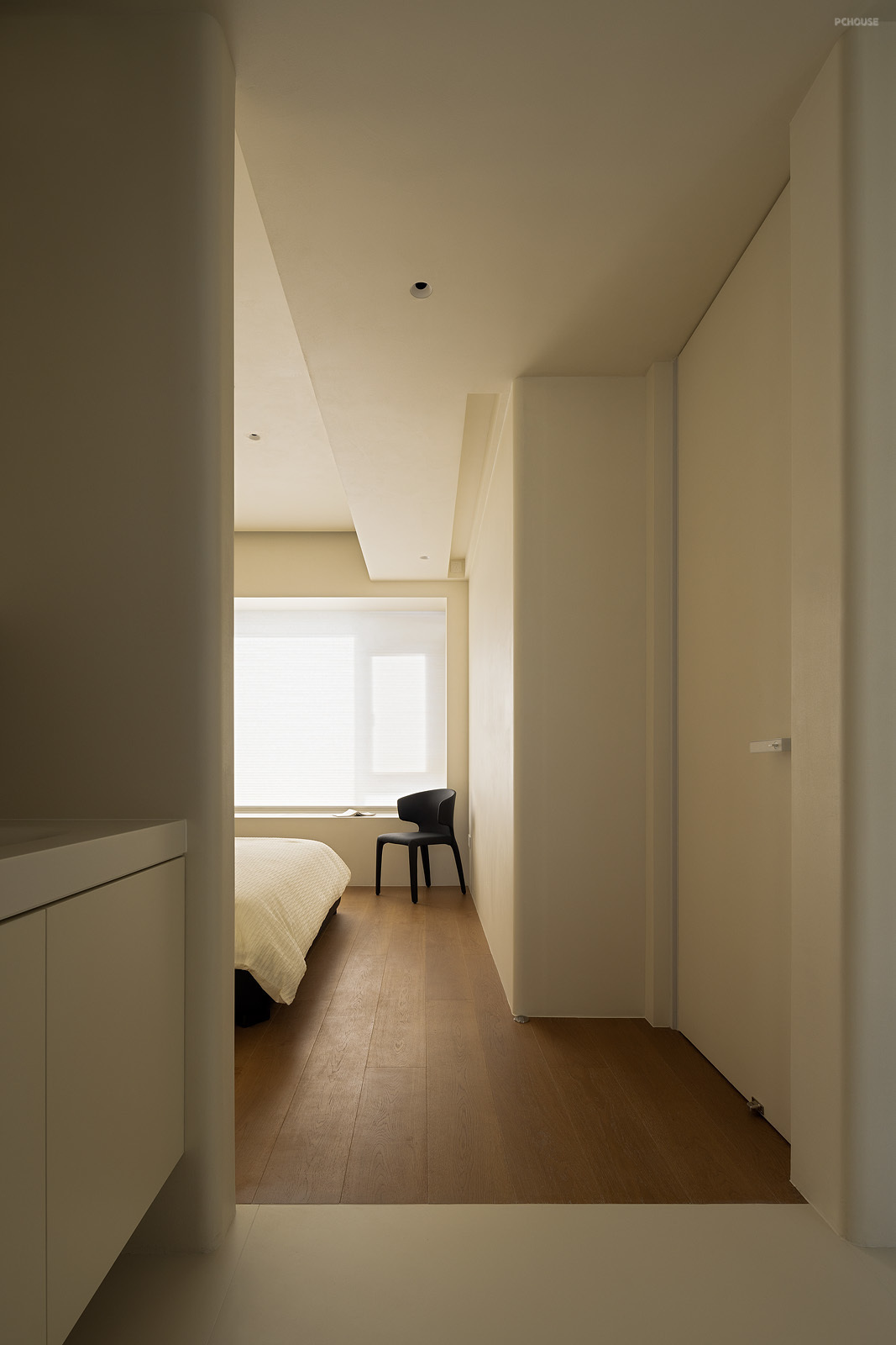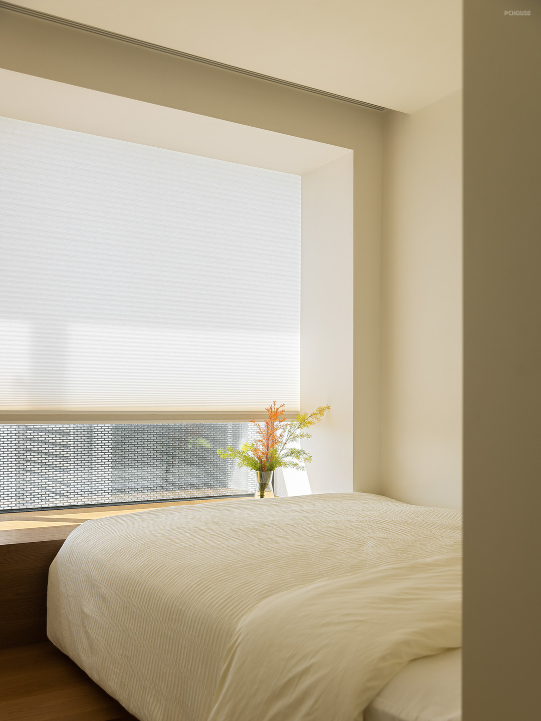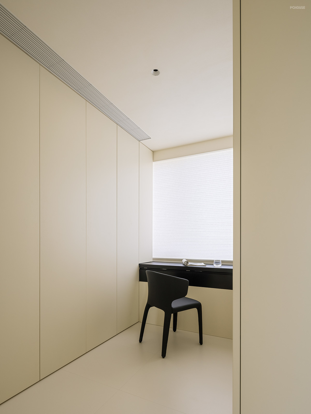 次卧延续着空间的主基调,在保证还原基础的功能下,将窗台打造成适合阅读的安静角落,同时让整个房间的氛围更加宁静和放松。
