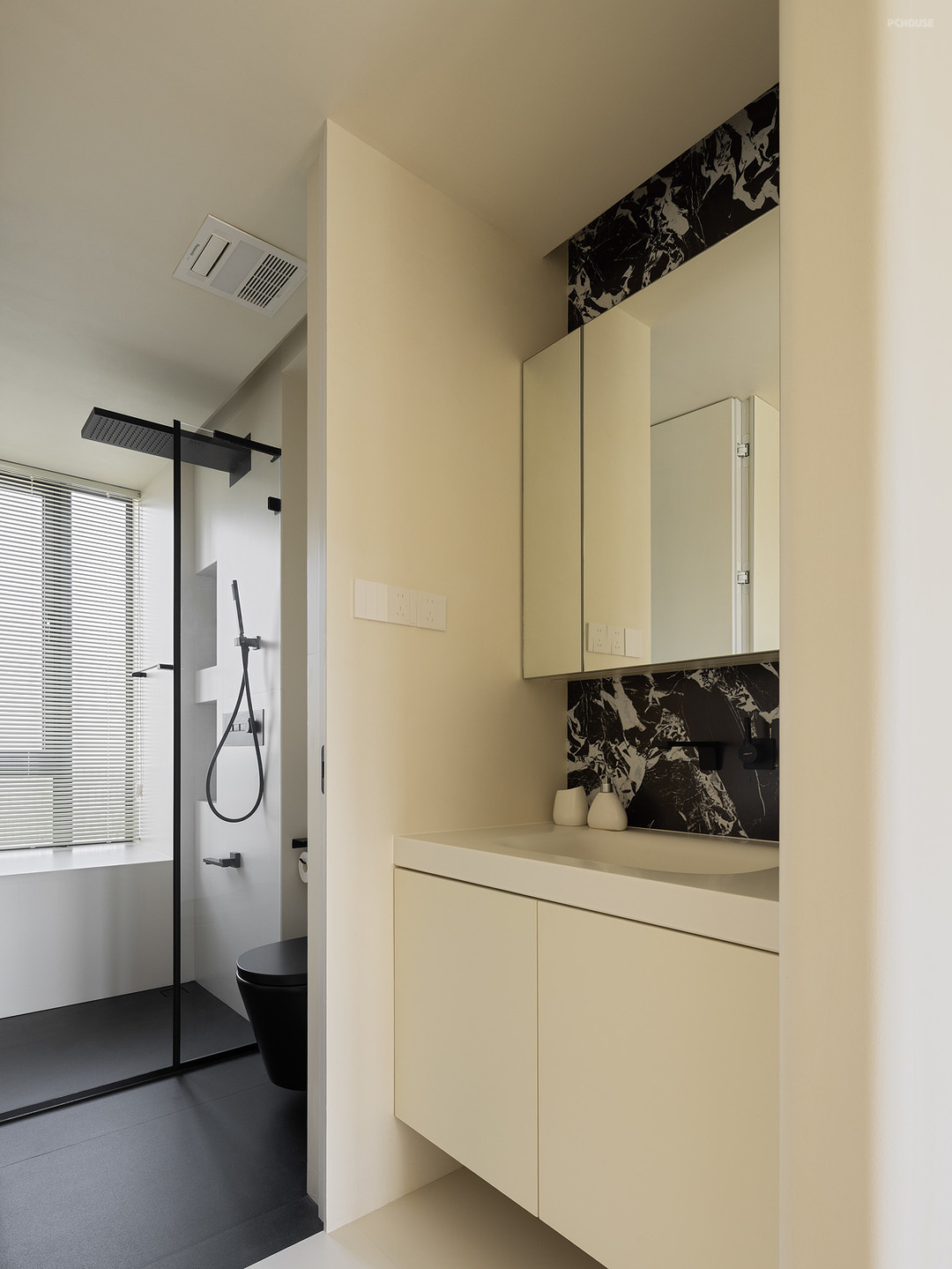 建立室内美学的基础,立足于空间的便利性与功能性,餐厨利用玻璃推拉门的形式,打造两个可自由闭合的空间,拥有了更加开阔的烹饪环境,同时也是与家人交流互动的地方。