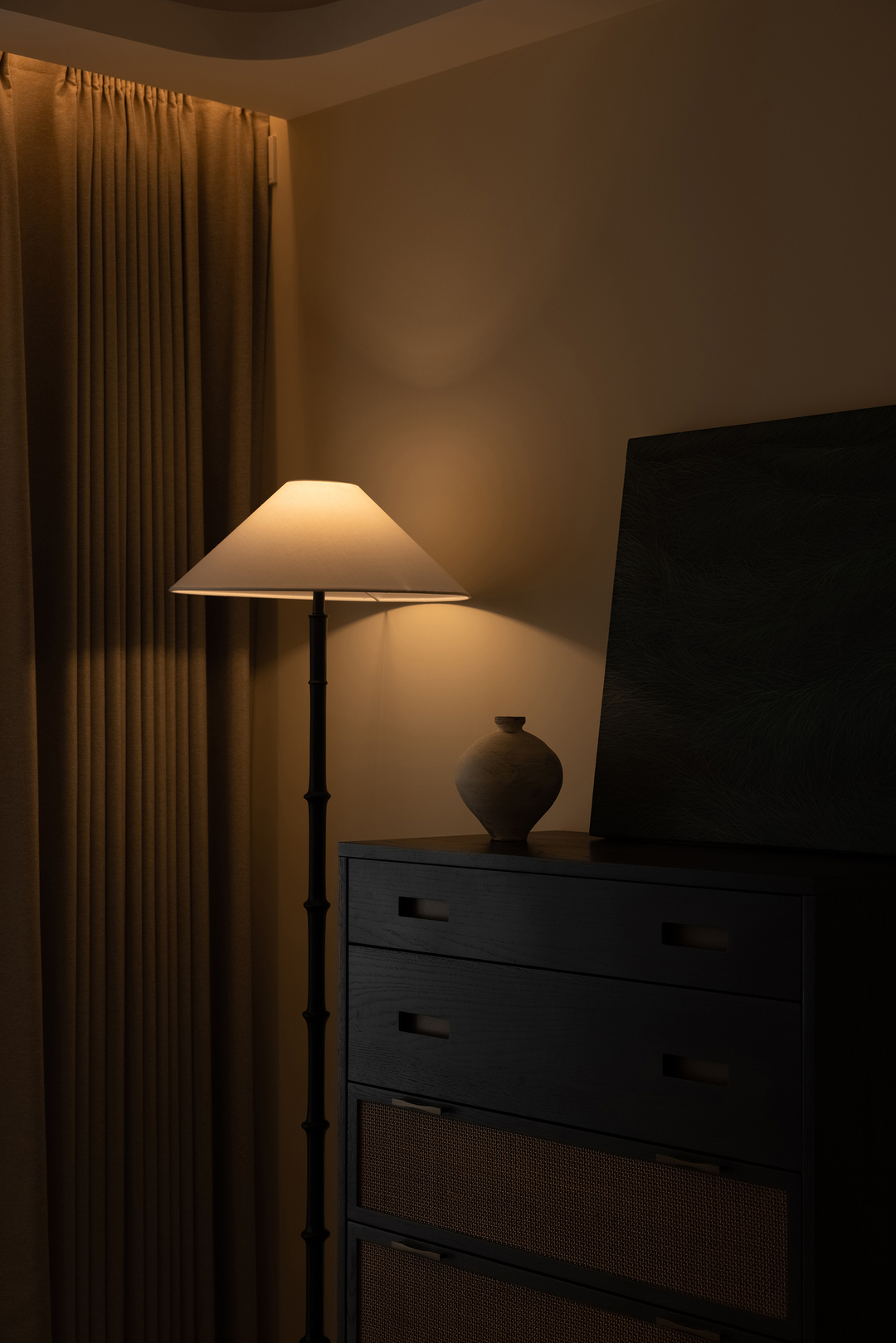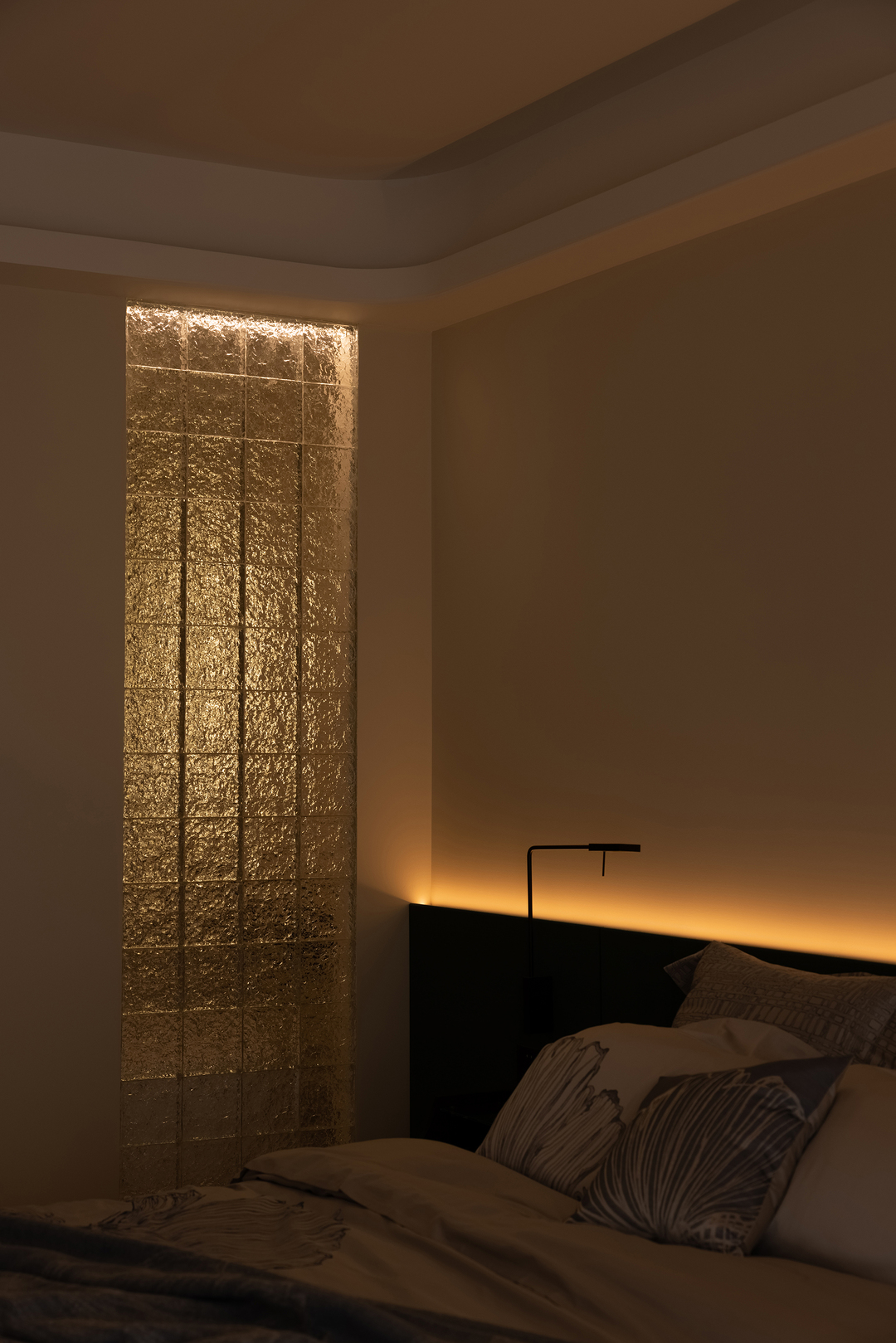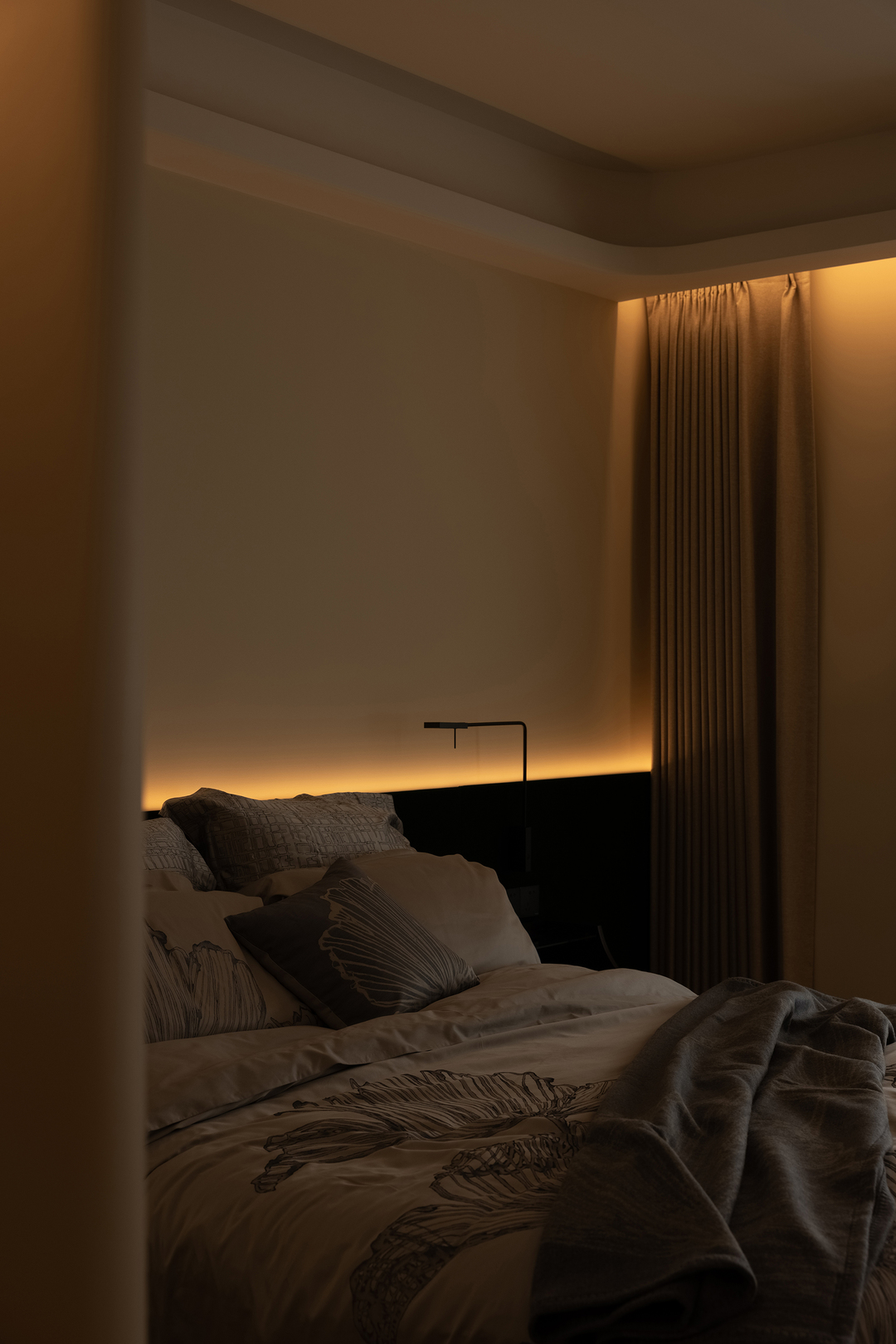 为了补充顶面的单一光源,增加了壁灯、墙面氛围灯以及落地灯。通过巧妙地选择和搭配不同类型的灯具,以及控制灯光的亮度和色温,可以为家居空间注入特定的氛围和个性。