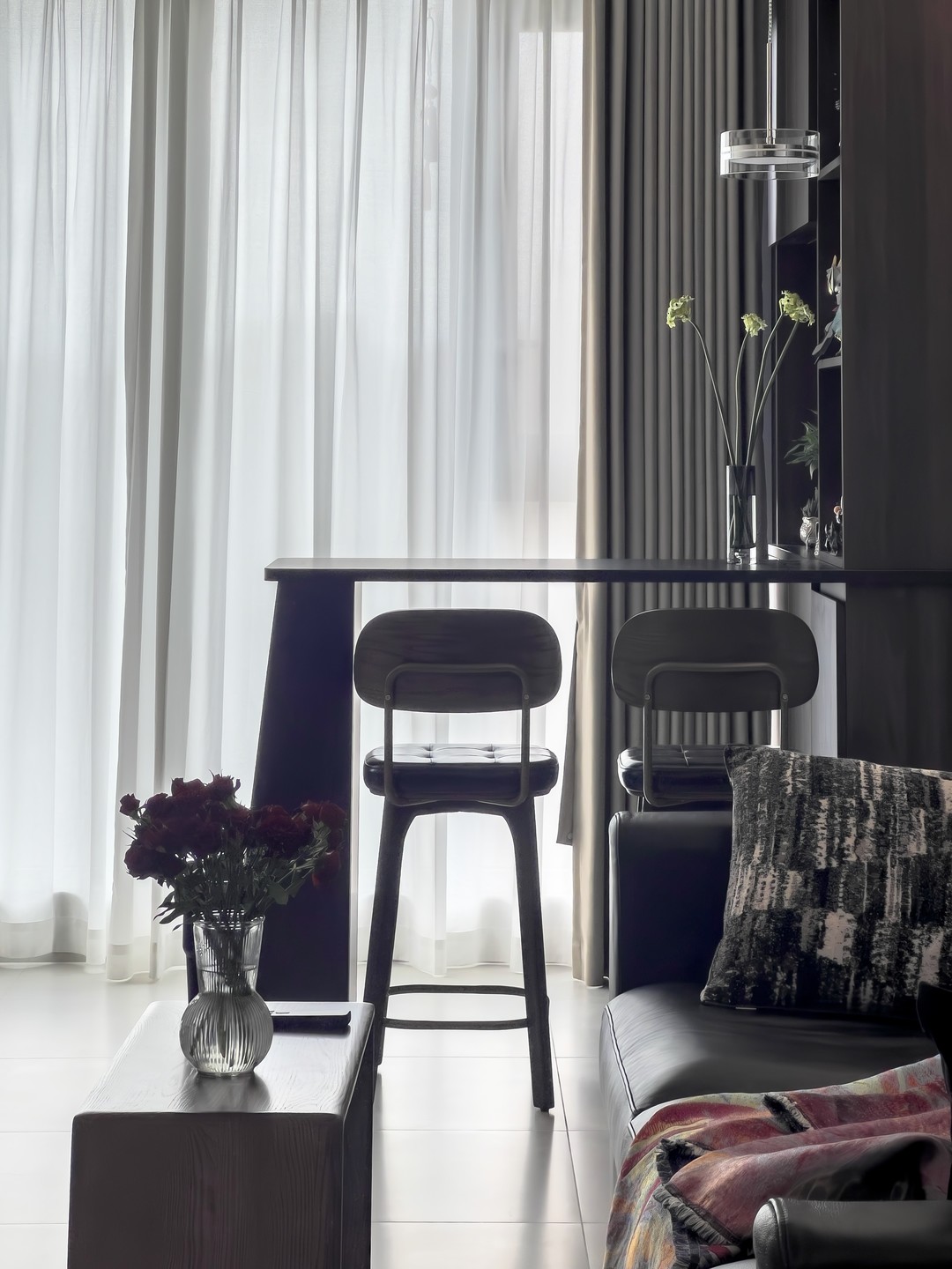 客厅与阳台交界处放置一座精致小吧台