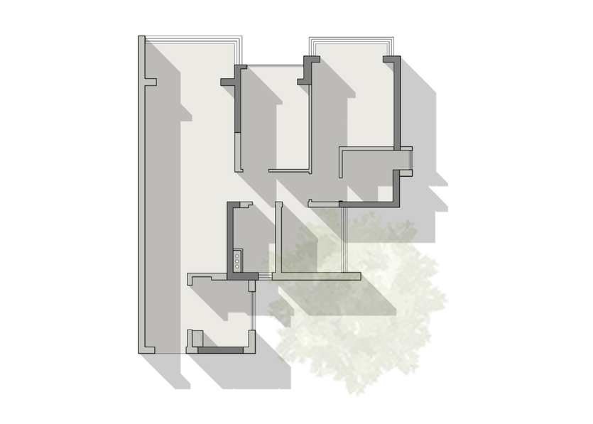 原阳台在封窗纳入客厅使用后,其功能被重新定义。我们通过引入绿植,弱化了传统晾晒区的生硬感,将其升级为一个能同时满足“生活实用”与“精神享受”的复合空间