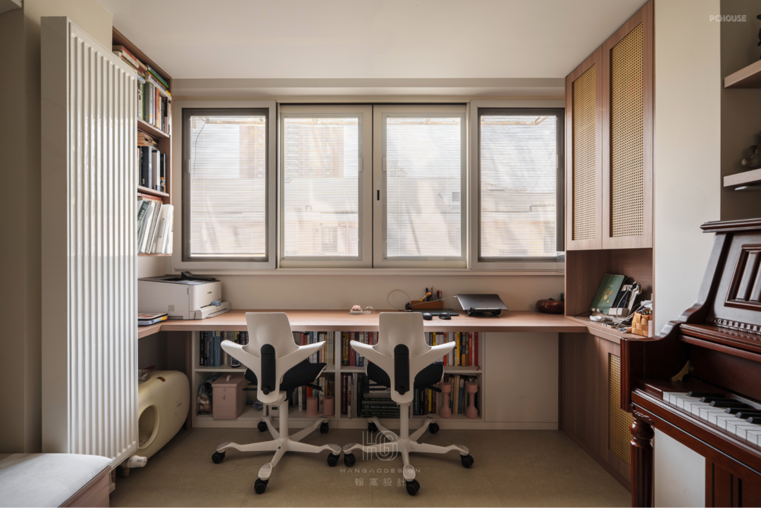 前言: 本案业主为了孩子的教育,从140平米的大房子换到了这套80平米的学区房。虽然面积缩小,但设计上充分考虑了家庭成员的需求,确保儿子和女儿各有一间独立的卧室,同时在上下两层各设有一个卫生间,方便使用。此外,夫妻二人的书房也经过精心设计,配备了两个工作位,满足两人同时工作或学习的需求。整体设计既实用又温馨,为一家人创造了一个舒适的居住环境。