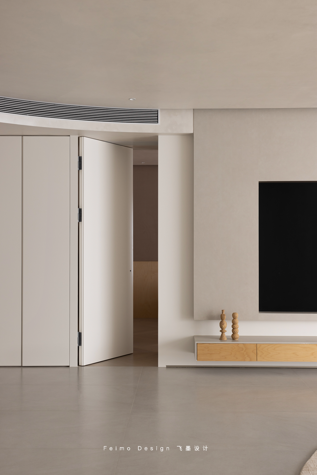 大面积的奶咖色铺陈家居岁月沉淀般的温柔感,简单的色彩用艺术涂料勾勒纹理;定制柜体,木色成了画龙点睛中的一笔,中和家居的空灵感,也给未来的生活更多的容积。