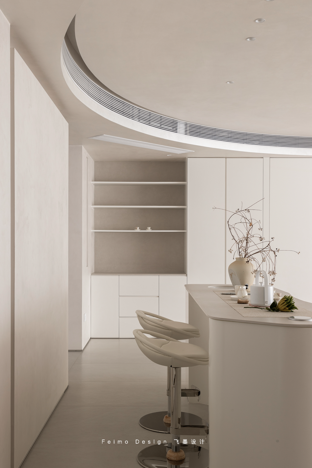 于客厅的一角设计岛台水吧区,不规则的弧线勾勒闲适的日常,也赋予每一天更丰满的生活体验。
