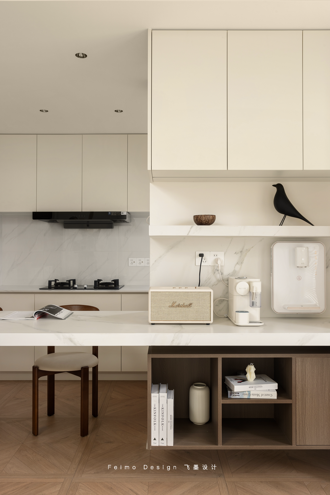 有很多人都反对做开放式厨房。但一个人生活,每一寸空间、每一件物品都是自己的,人最应该取悦的就是自己,既然喜欢开放式的厨房,那就打通。喜欢的设计、喜欢的东西统统带回家。
