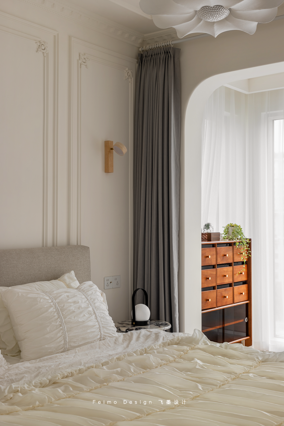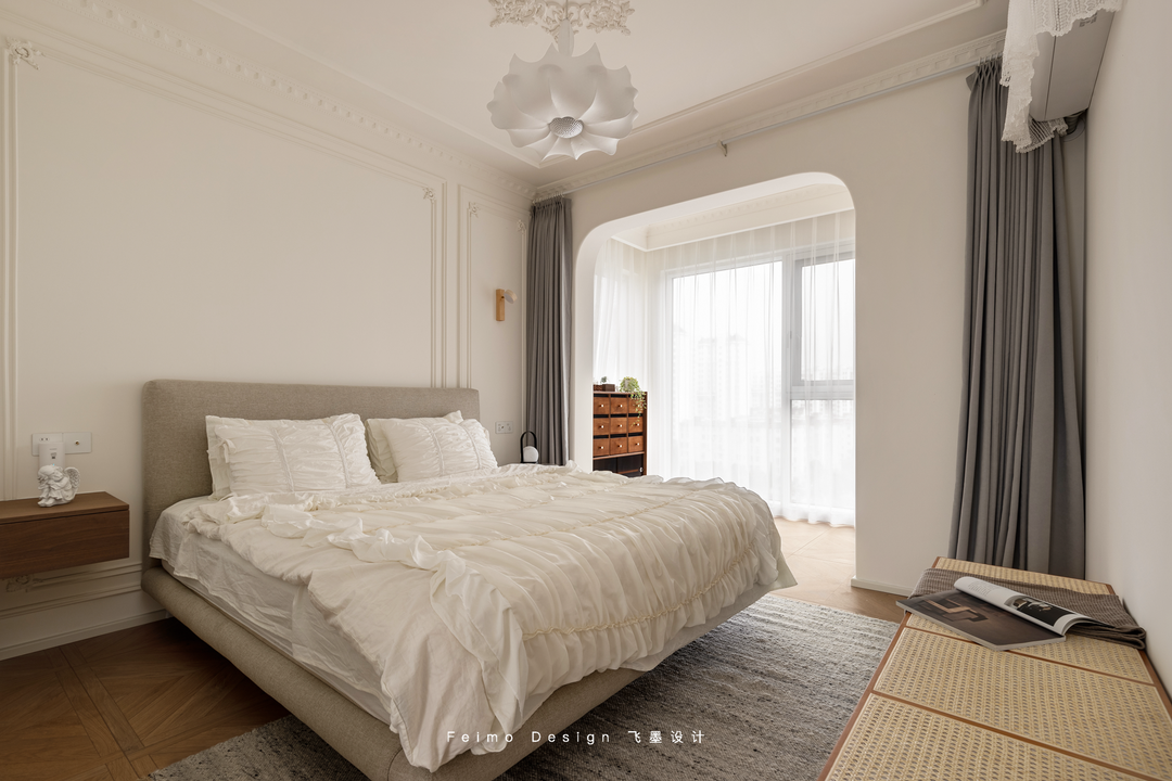 荷叶边的床品柔软舒适,和全屋温馨调性更搭。高品质的生活都在一点一滴的细节,躺在哪里都有舒适自在的松弛感。