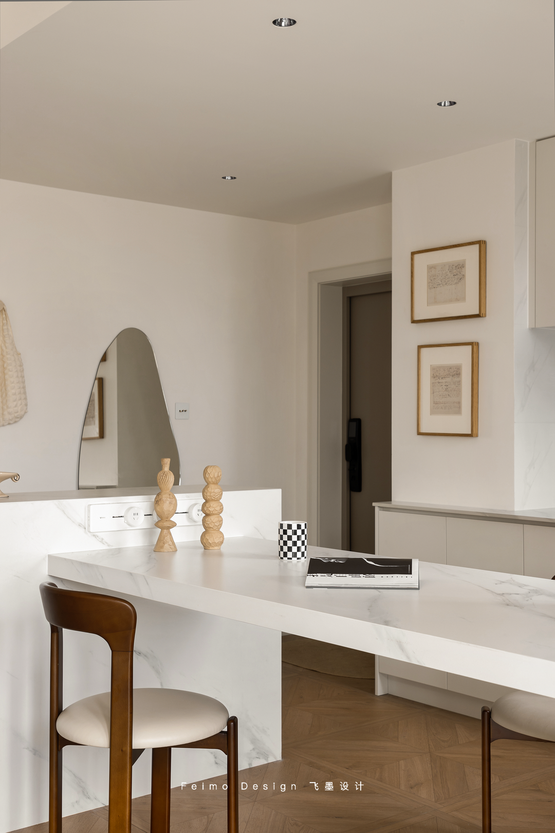 ③厨房改造成开放式,岛台餐桌作为隔断,实用也好看。