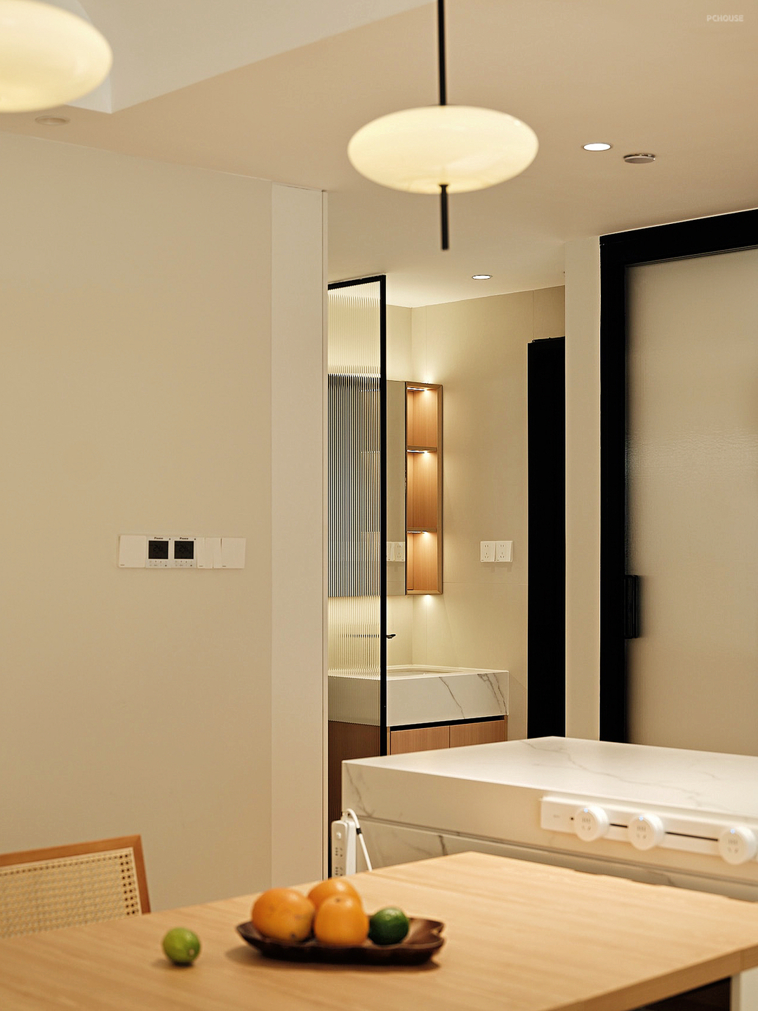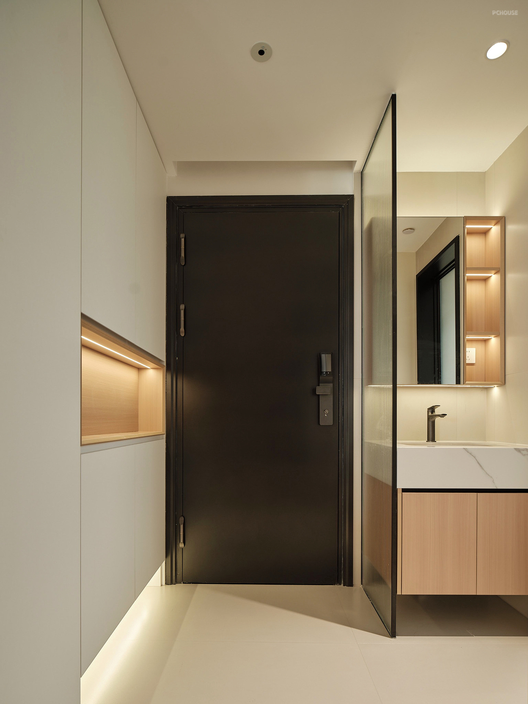 合理分区布局,以入户换鞋-洗手的行为习惯,打造独立、自成一体的功能空间。