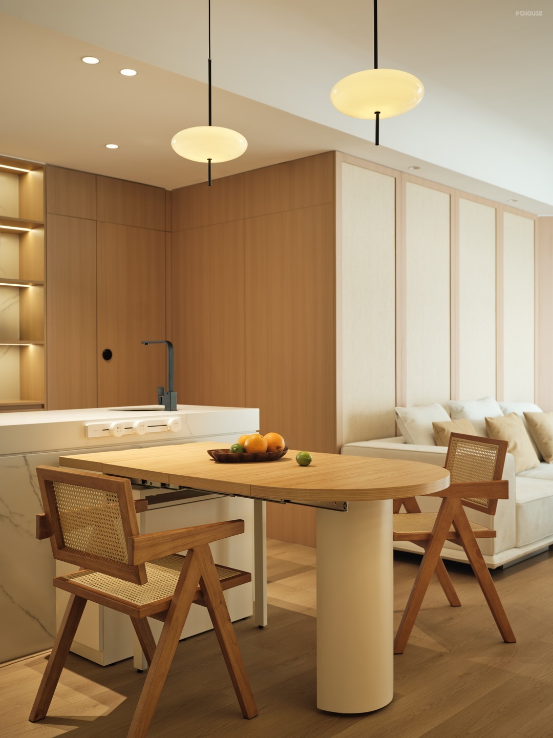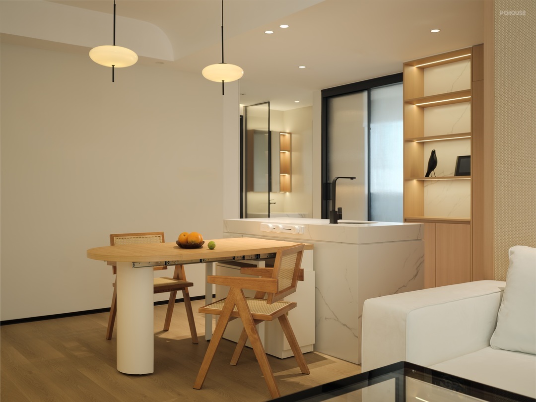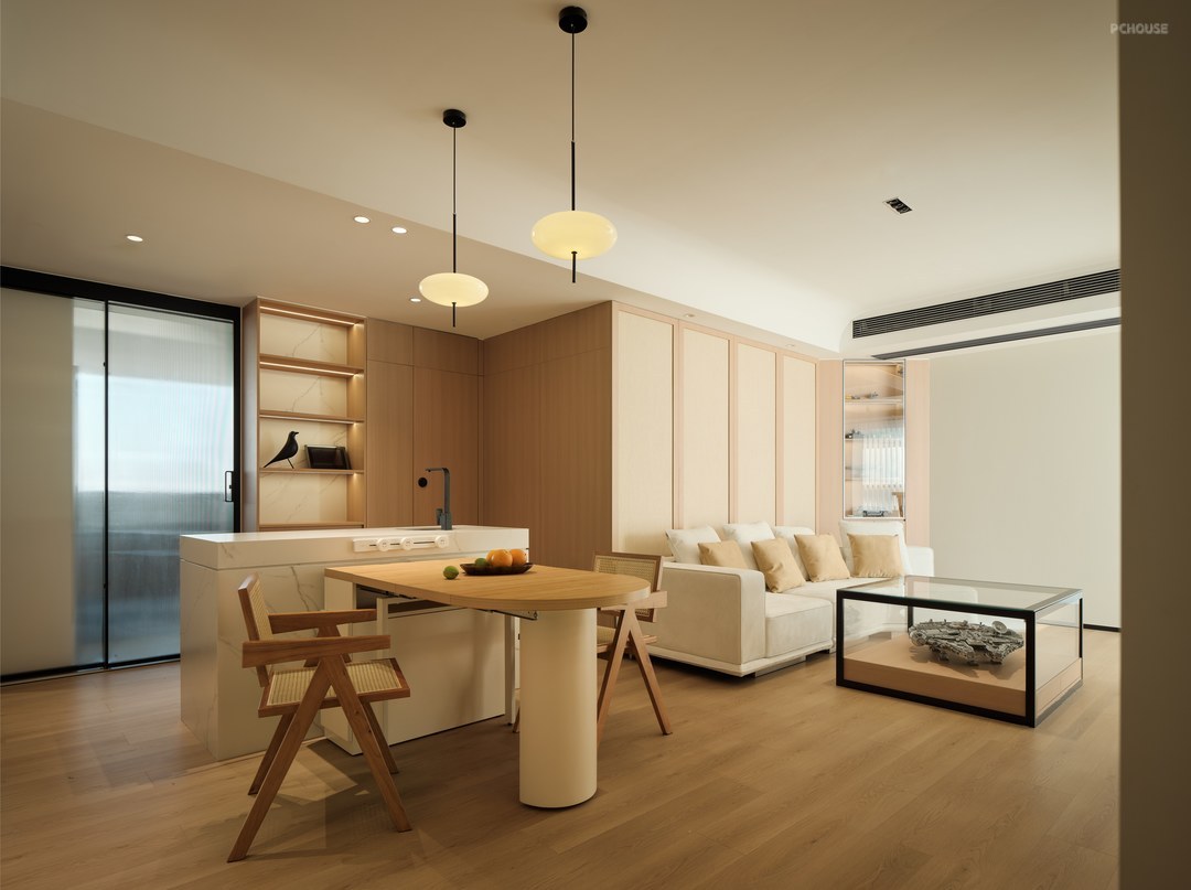 以自然、空间为引,细化区域功能,打造核心区满足多样的实用需求;整体采用原木和浅奶油色搭配,整体色调柔和,呈现自然,简约温馨的家居氛围,满足三代人的居住需求,并且更加强调了其整体舒适性和实用性。
