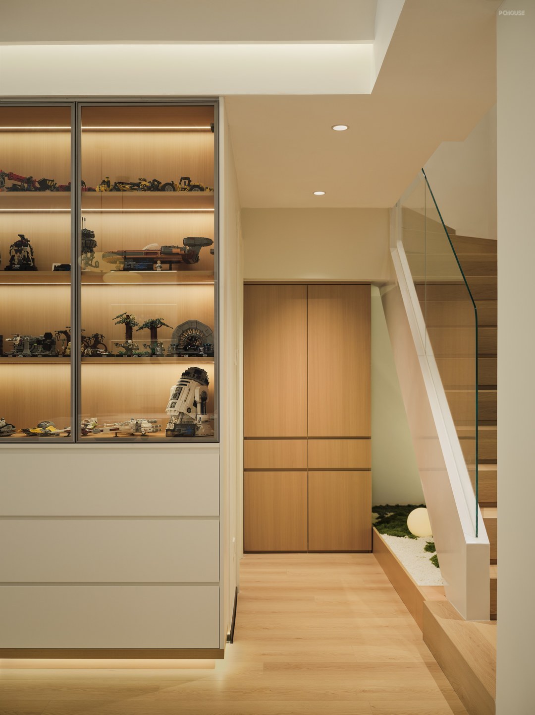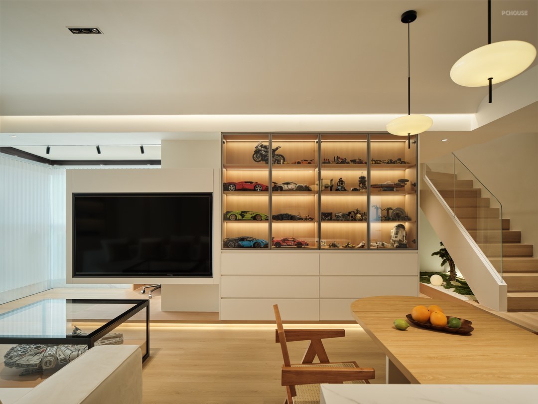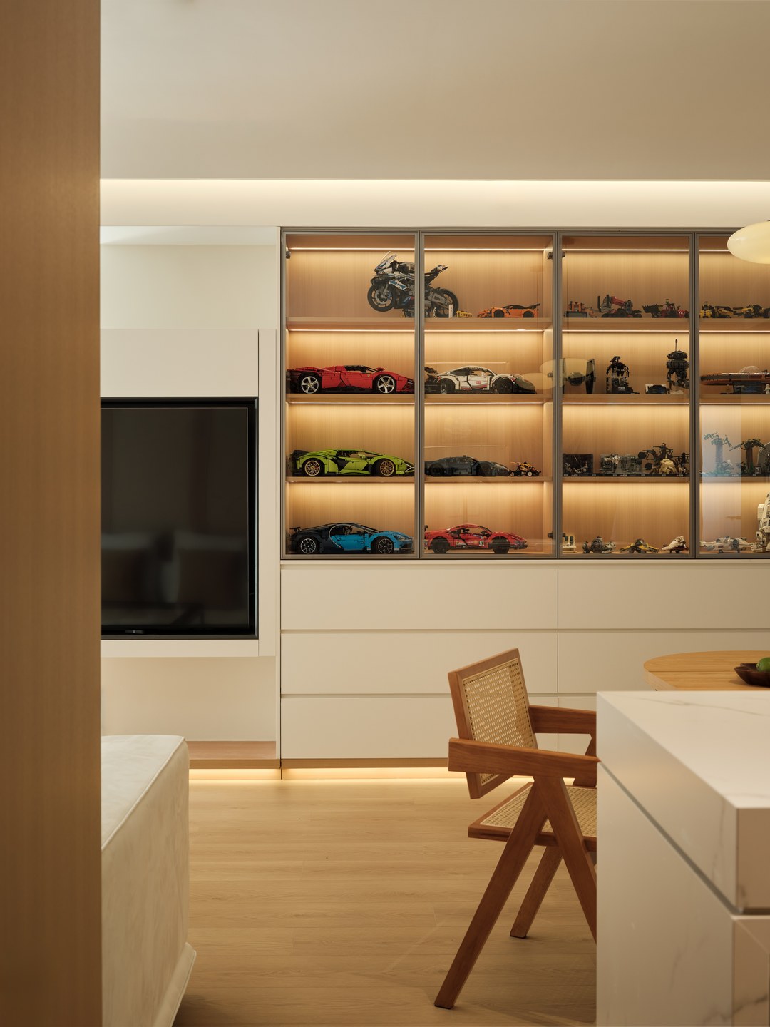 家中独特的展示收纳柜,收藏着屋主的乐高模型,摆上自己感到满意的作品,成为家里别致的一角。