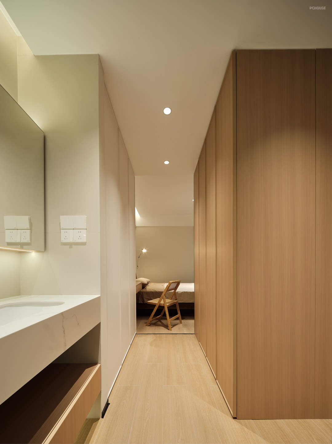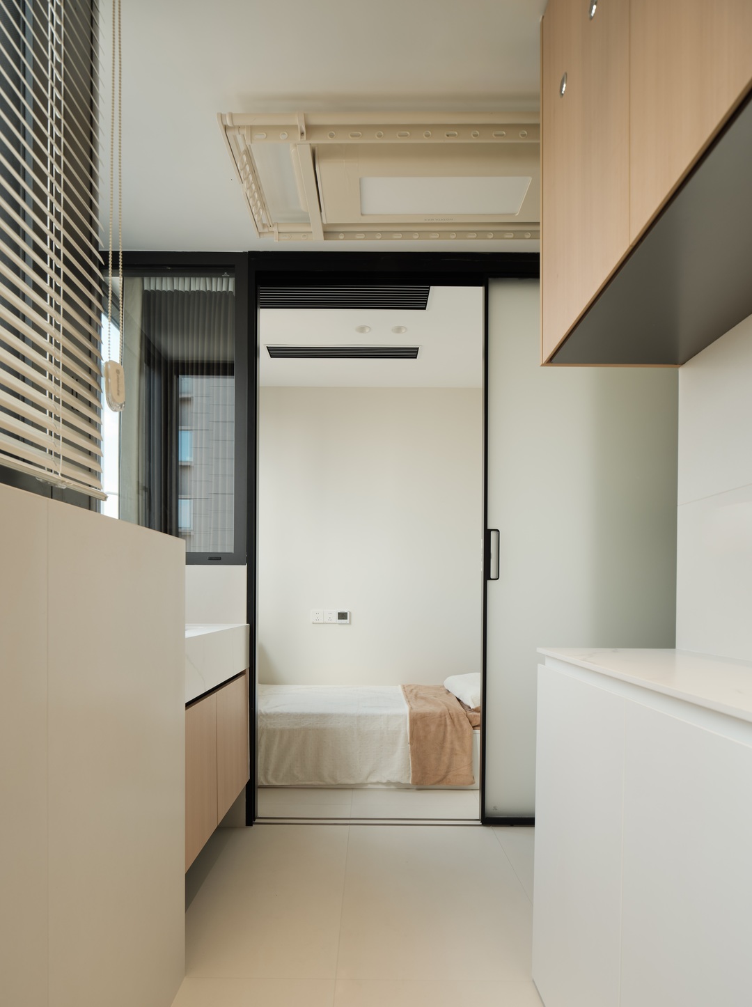 在厨房区还“藏”了一个家政区和保姆房,跟主人使用空间分开,互不干涉,房间的采光充足,通风性也很好,非常具备人文关怀的私人空间。