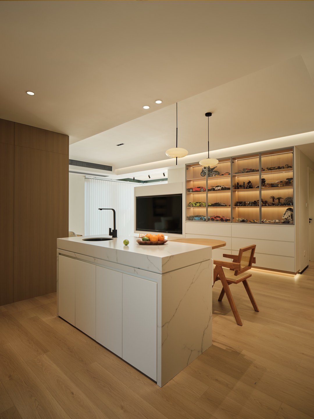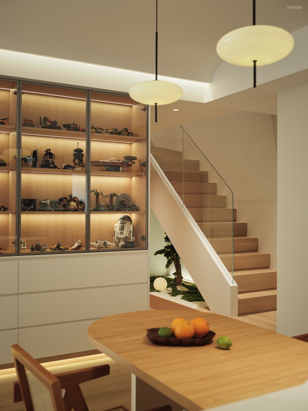 本案项目位于广州珠江边的125㎡复式精装房改造,普通冰冷的样板精装房并不能满足新的生活方式和审美标准。三代同堂的居住结构,屋主希望客厅有充足的采光,有孩子玩耍的区域。另外男主人是一位乐高狂热者,家里需要大量乐高模型展示柜,在兼顾收纳同时,尽可能多地展示模型。