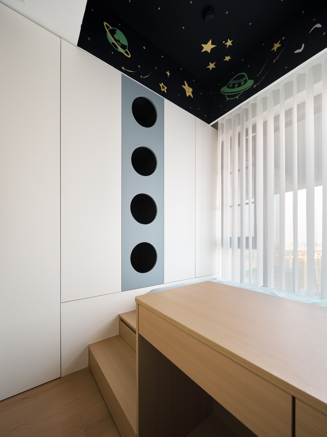 简约的装饰,不代表空旷和乏味,那些隐藏的惊喜,要远胜于一些华丽装饰的堆砌。自由游动的空间,都是孩子们玩耍的区域。