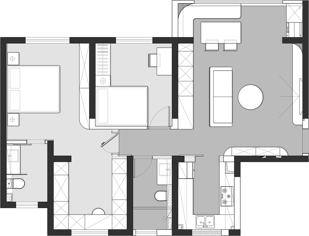 3、主要活动区域的家居动线过分单一,使用感,空间感双不足。