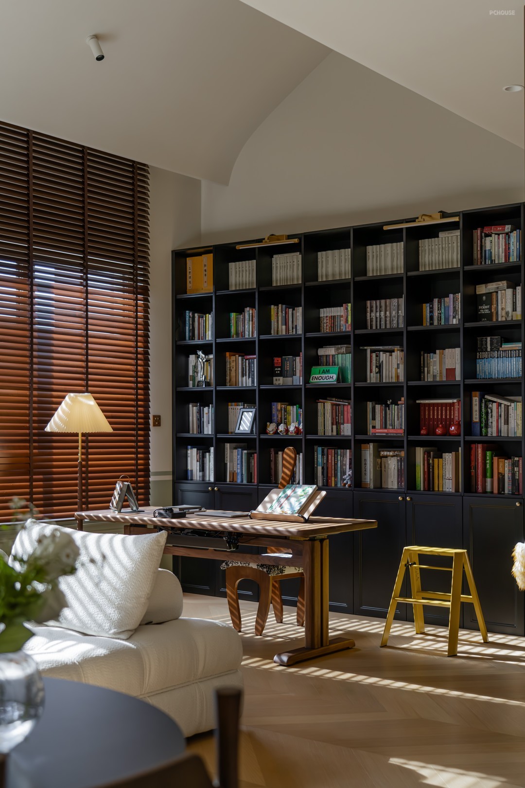 客厅的整面书墙,作为视觉重心成为家中一景。
