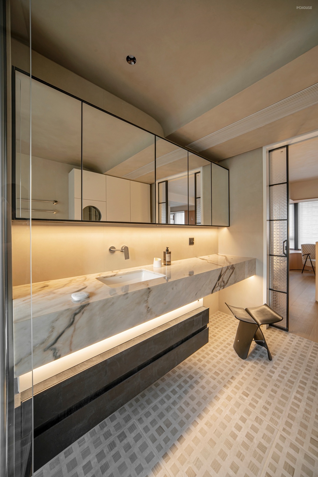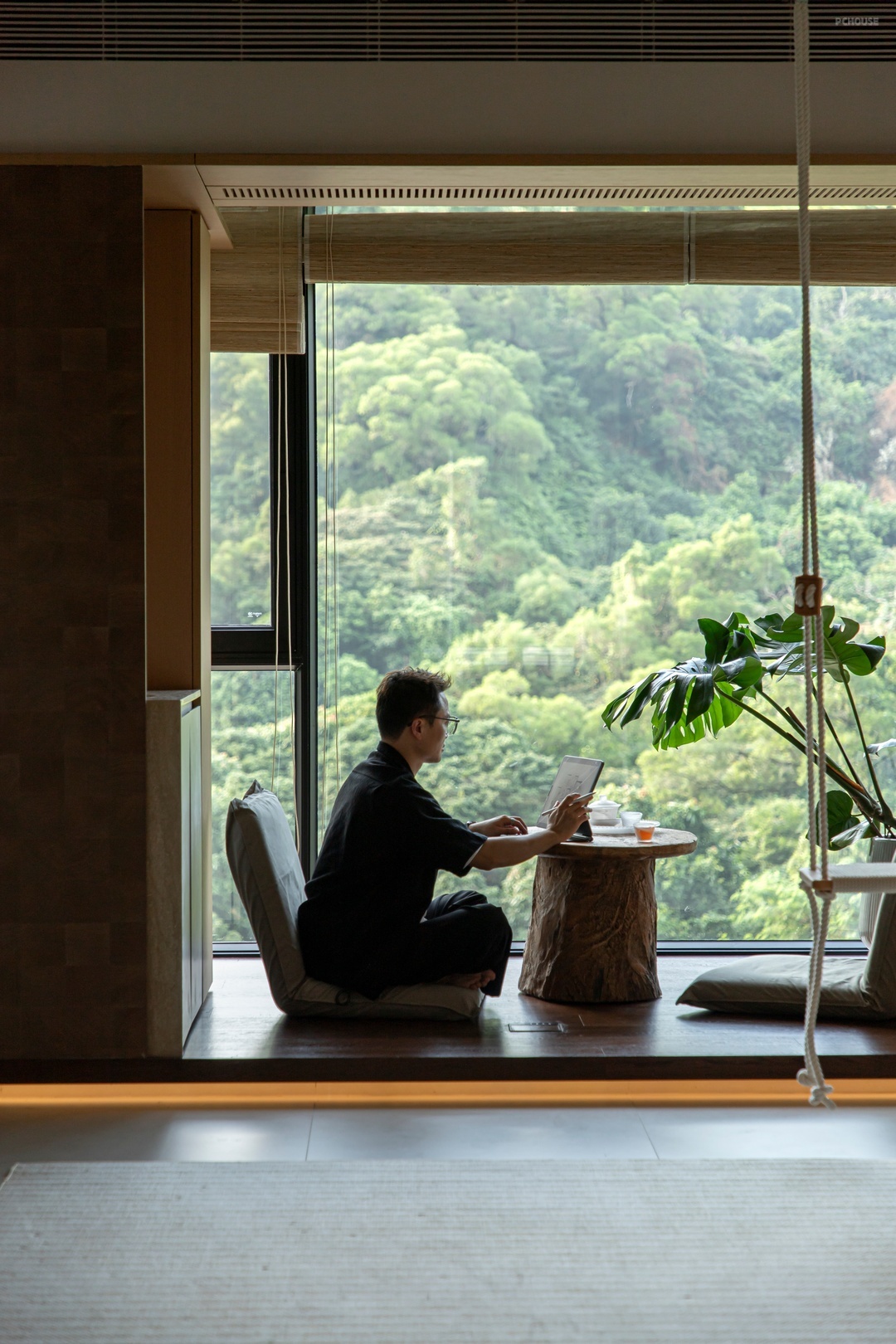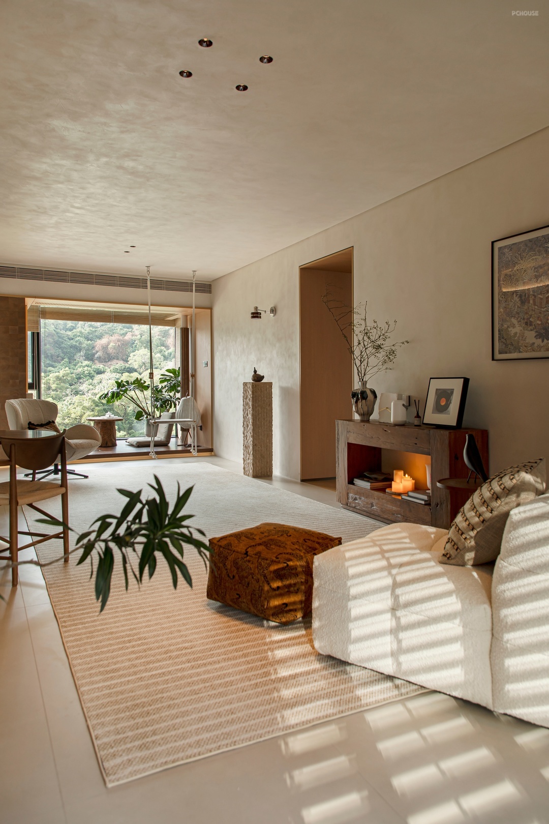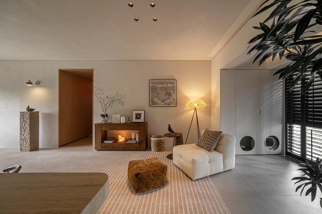 本案是设计师自宅,坐落于广东珠海十字门的优越地段,设计师以自然山景与室外环境的和谐共生为灵感,巧妙地弱化了空间边界,继而实现自由平面可随意变动的家,同时融入了独特的东方美学设计理念。这不仅满足了设计师对生活方式和居住空间的全新思考,更是对居住品质的进阶追求。