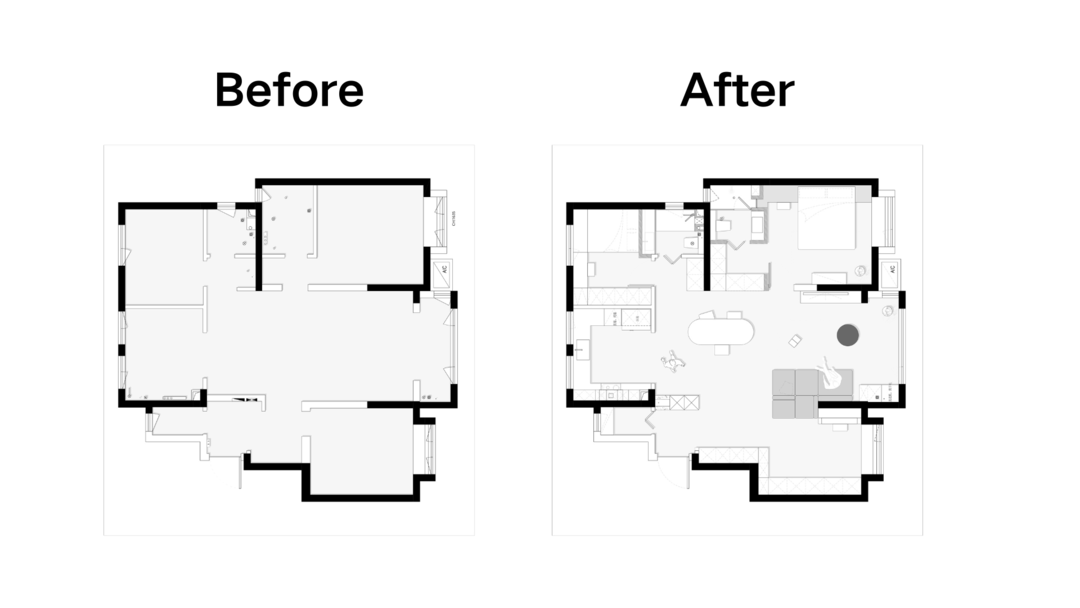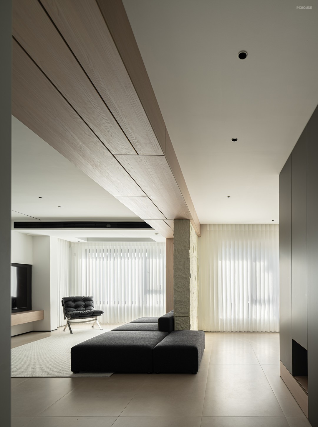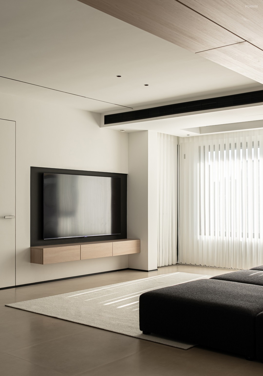 本案以收纳为重心,通过简洁的线条、交错的材质与灵活的动线,营造出一个既整洁有序又充满细节的家。我们摒弃繁复装饰,对材质细细考量,强调功能与美学的统一。